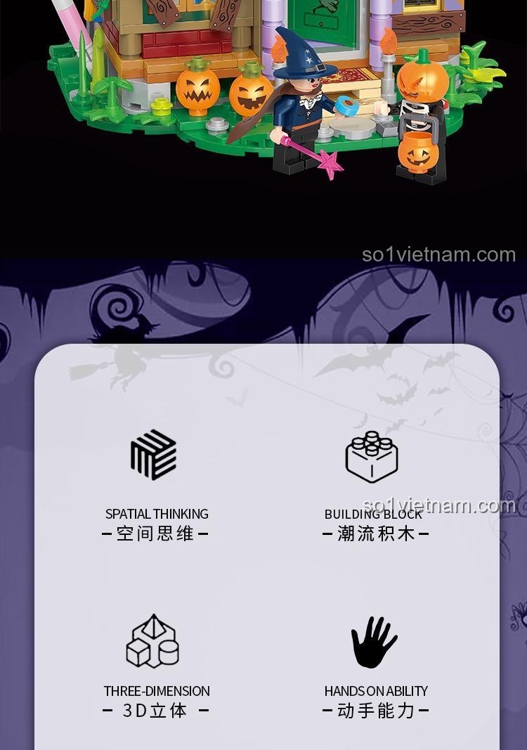 • Sáng tạo và trí tưởng tượng: Sau khi hoàn thành, bé có thể thỏa sức sáng tạo những câu chuyện, kịch bản chơi nhập vai cùng các nhân vật và ngôi nhà ma quái.