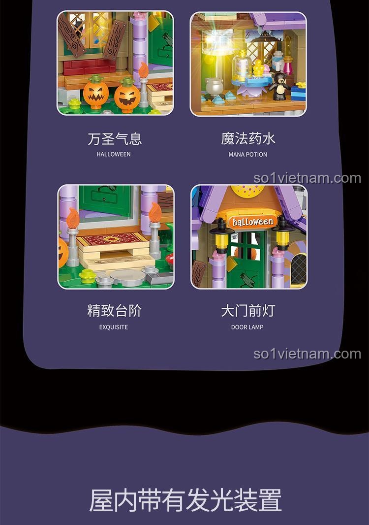 • Quà tặng kèm: Khi mua bộ lắp ghép này, bạn sẽ nhận được một bộ phụ kiện trang trí độc đáo, giúp ngôi nhà Halloween thêm phần sinh động.