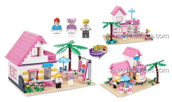 🎨 Thiết Kế Tinh Tế, Màu Sắc Ngọt Ngào Của đồ chơi xây dựng Biệt Thự Màu Hồng