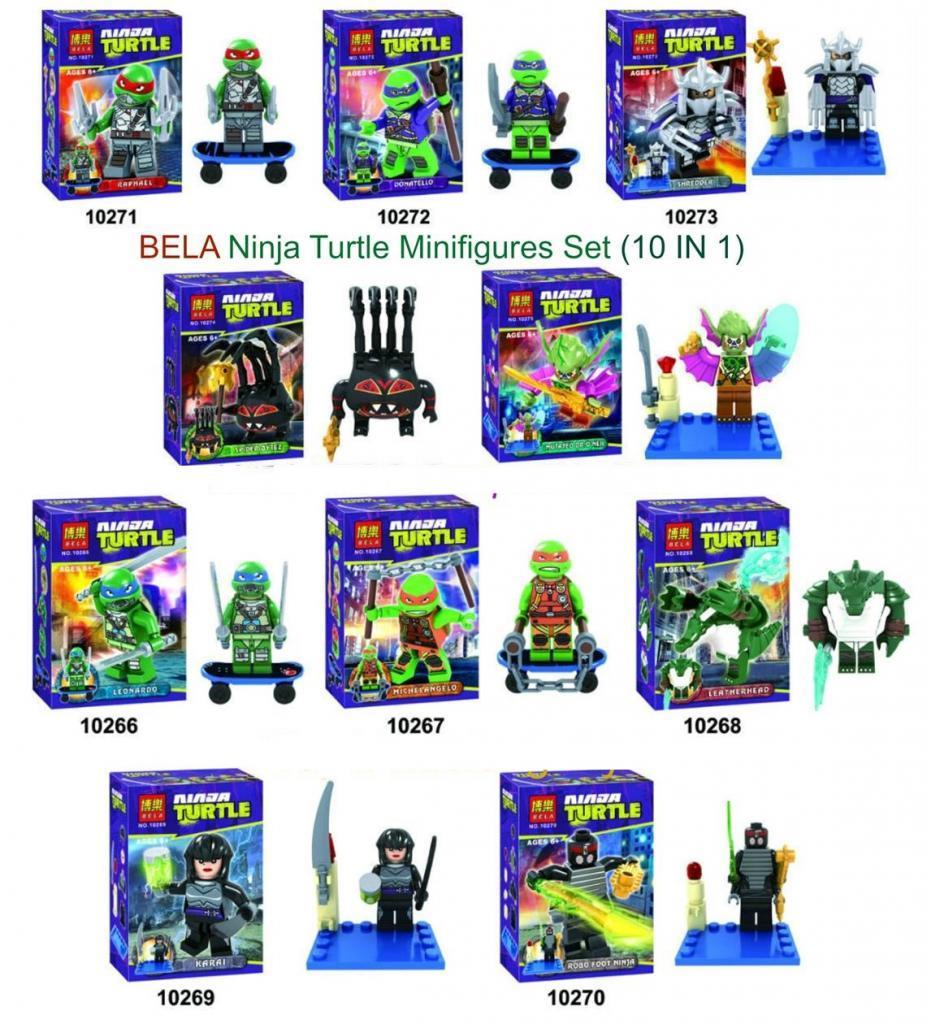 Bộ BELA 10271 bao gồm 10 nhân vật Ninja Rùa và các nhân vật liên quan, cho phép bé sưu tập trọn vẹn đội hình.
