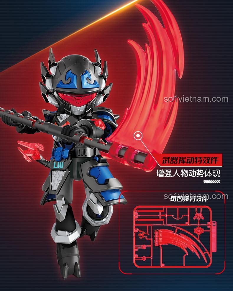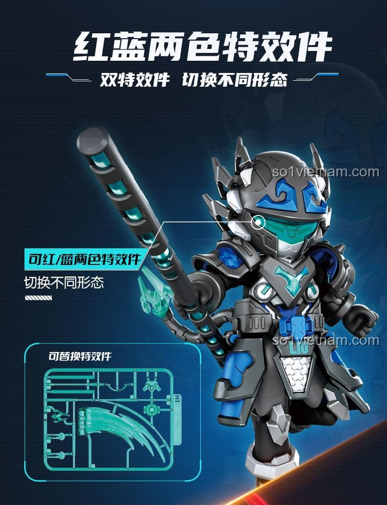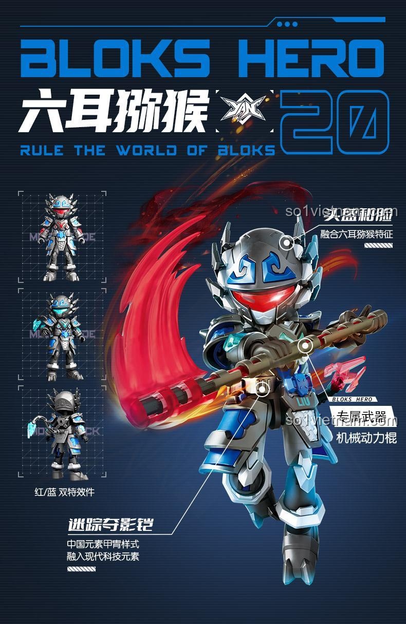 - Sử dụng các mảnh ghép từ bộ đồ chơi BLOKEES khác để tùy chỉnh thêm giáp hoặc vũ khí cho Lục Nhĩ Di Hầu.
