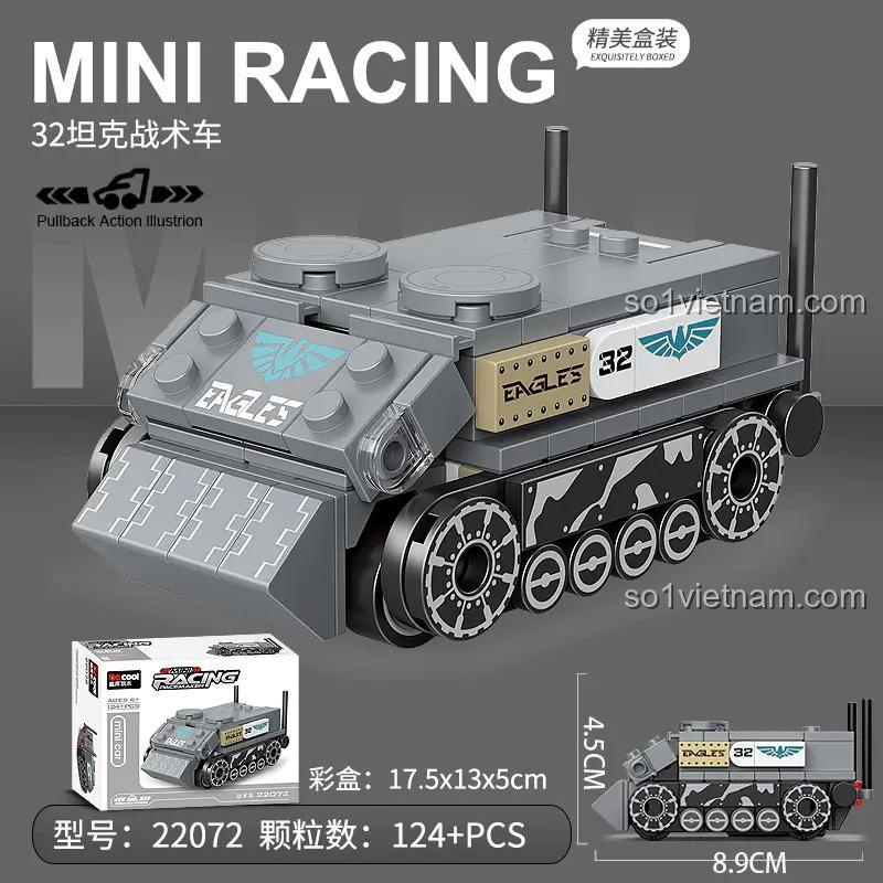Điểm đặc biệt và hấp dẫn nhất của bộ đồ chơi này chính là tính năng động cơ kéo lùi mạnh mẽ. Sau khi hoàn thành việc lắp ráp 124 chi tiết, bé chỉ cần kéo lùi chiếc xe tăng hồi lực 22072 về phía sau, thả tay ra và xem nó lao vút về phía trước với tốc độ ấn tượng. Tính năng này không chỉ mang lại niềm vui tức thì mà còn giúp bé hiểu về nguyên lý hoạt động của động cơ cơ học một cách đơn giản. Những cuộc đua xe tăng mini sẽ trở nên sống động và kịch tính hơn bao giờ hết, khơi gợi tinh thần cạnh tranh lành mạnh và sự phấn khích trong bé. Động cơ kéo lùi được tích hợp hoàn hảo vào thiết kế của xe tăng bọc thép chiến thuật, đảm bảo độ bền và khả năng vận hành mượt mà. Bé có thể tổ chức các cuộc đua với bạn bè, tạo ra những thử thách tốc độ và chiến thuật, từ đó phát triển khả năng phối hợp tay mắt và phản xạ nhanh nhạy. Đây chắc chắn là một tính năng không thể bỏ lỡ của bộ lắp ghép Xe tăng hồi lực này.
