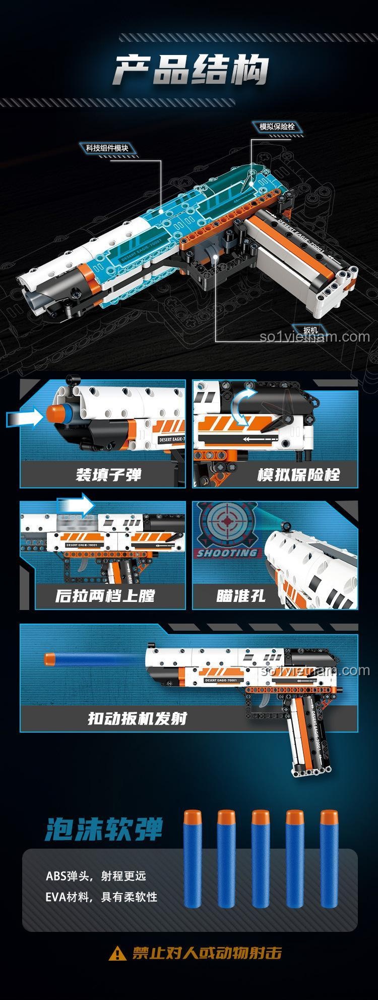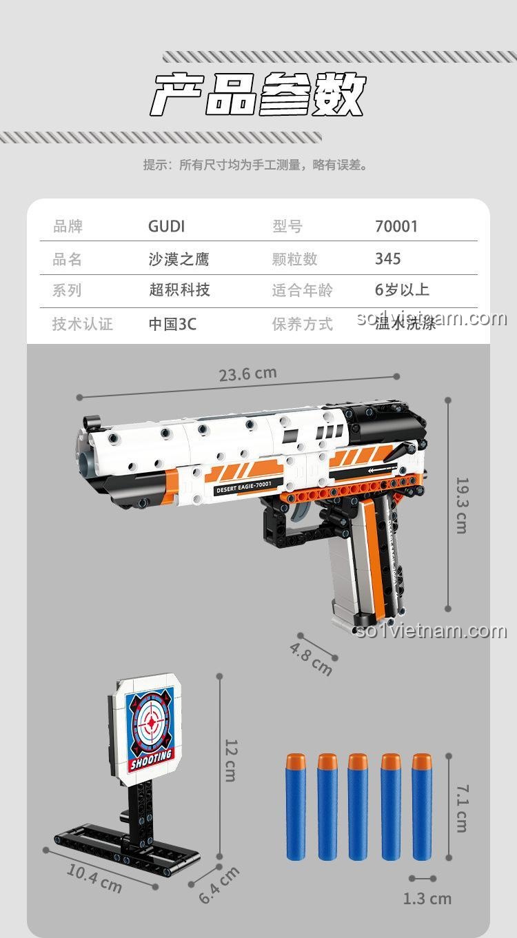 Bộ đồ chơi GUDI 70001 Súng Lục Sa Mạc Đại Bàng (345 mảnh ghép) – Sức Mạnh Sa Mạc và Bắn Đạn Xốp An Toàn