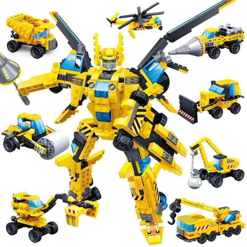 Sản phẩm này cực kỳ đa năng! Bé có thể lắp ráp 8 chiếc xe công trình riêng biệt, và sau đó hợp thể chúng lại thành một Robot chiến đấu Xe công trình khổng lồ. Tổng cộng là 9 kiểu lắp ráp khác nhau, mang đến trải nghiệm chơi đa dạng và không giới hạn.