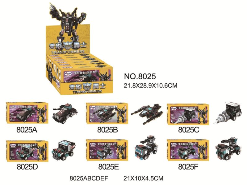 Với bộ đồ chơi Winner 8025C, bé yêu sẽ được thỏa sức sáng tạo với khả năng biến hình thành 6 dạng robot khác nhau. Mỗi dạng robot đều có thiết kế độc đáo, mạnh mẽ, lấy cảm hứng từ thế giới Transformers quen thuộc. Bé có thể lắp ráp thành: