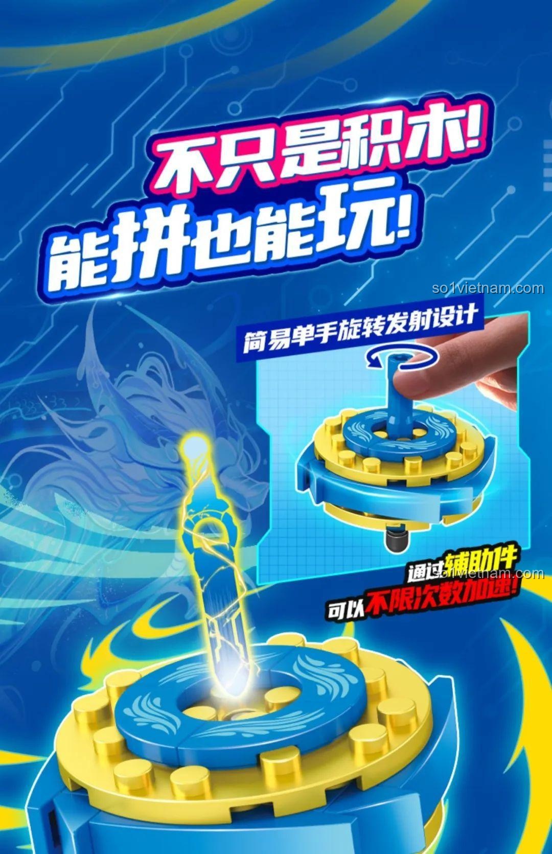 Bộ đồ chơi có tính năng tùy chỉnh, tăng tốc lặp lại và có thể lắp ráp thành 4 mẫu con quay khác nhau.
