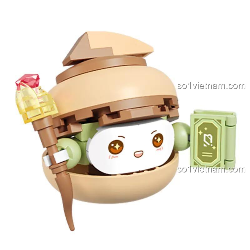 Mô hình Phù thủy Macaron SEMBO 615047 gây ấn tượng mạnh mẽ với thiết kế hình bánh macaron độc đáo, mang đến vẻ ngoài vừa ngọt ngào vừa bí ẩn. Với màu sắc chủ đạo là nâu kem ấm áp, điểm xuyết bởi sắc xanh lá tươi tắn của cuốn sách phép thuật và cây gậy, cùng viên đá đỏ rực rỡ, nhân vật này thực sự nổi bật. Kích thước mô hình nhỏ gọn 8.2 cm chiều dài, 6.2 cm chiều rộng và 5.5 cm chiều cao, rất vừa vặn để bé cầm nắm và chơi. Từng mảnh ghép của bộ lắp ghép 047 được thiết kế tinh xảo, tái hiện chân thực hình dáng của một chiếc bánh macaron khổng lồ với nhân vật phù thủy ẩn mình bên trong. Sự kết hợp giữa hình ảnh bánh kẹo và nhân vật phép thuật tạo nên một Đồ chơi Macaron SEMBO 615047 không thể cưỡng lại, kích thích thị giác và trí tưởng tượng của bé gái 6 tuổi.