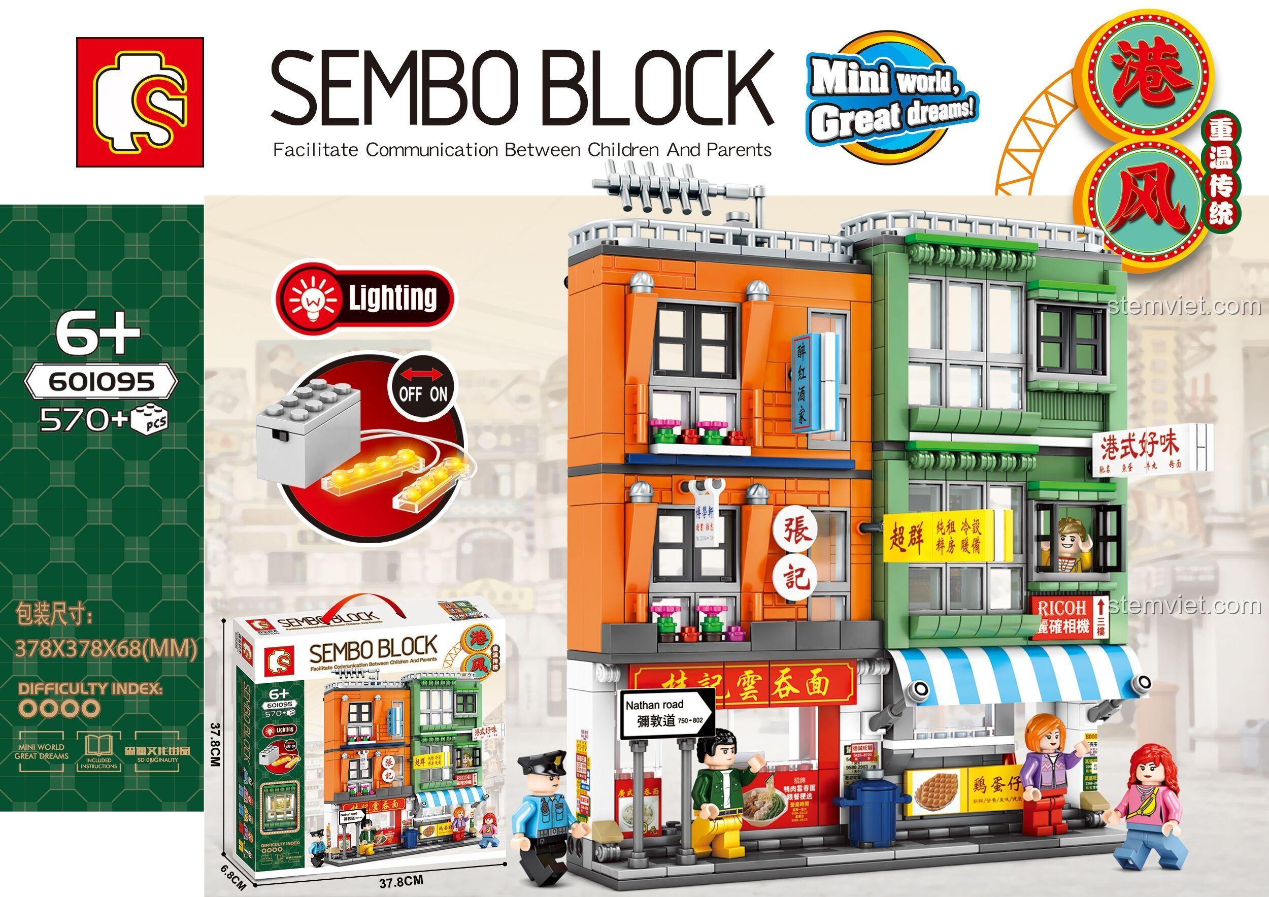 Bộ Đồ Chơi SEMBO Block 601095 Phố Cổ Hồng Kông (570 Mảnh) – Nét Đẹp Cổ Kính và Có Đèn LED