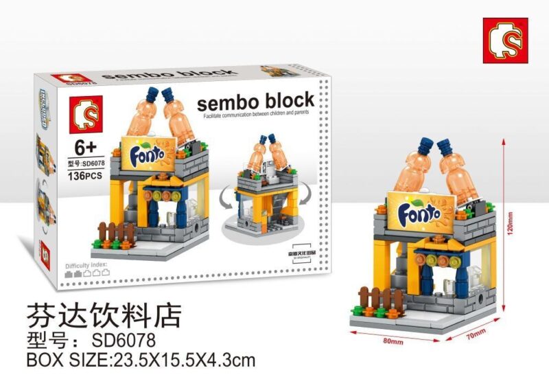 Không hề khó! Bộ lắp ghép Sembo Block SD6078 Cửa hàng đồ uống Fanta được thiết kế với 136 mảnh ghép, phù hợp với độ tuổi 6+. Hướng dẫn chi tiết và hình ảnh minh họa rõ ràng sẽ giúp bé dễ dàng hoàn thành mô hình. Đây là một đồ chơi mô hình Quán nước Fanta rất thích hợp cho những bé mới bắt đầu làm quen với đồ chơi lắp ráp.