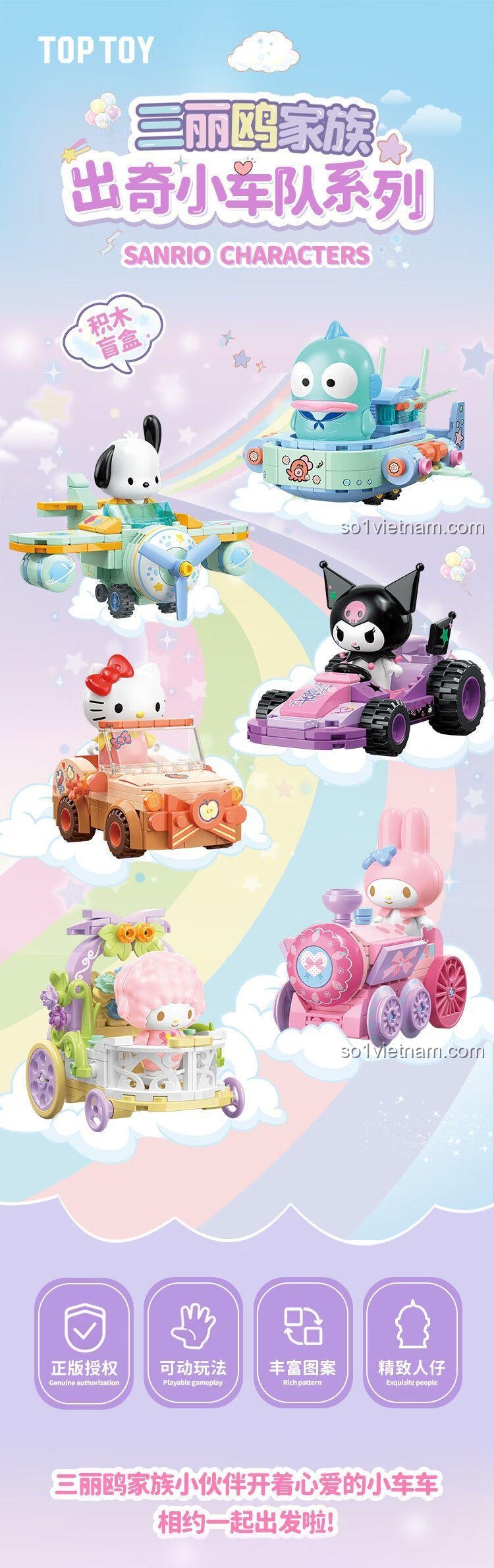 Sản phẩm TOP TOY Đội Xe Sanrio Characters được thiết kế theo kiểu chi tiết tương thích LEGO®, cho phép bạn kết hợp và sáng tạo không giới hạn với các bộ lắp ghép khác.