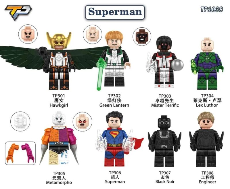 Trả lời: Bộ Engineer TP307 này bao gồm tổng cộng 8 nhân vật siêu anh hùng DC nổi tiếng, mỗi nhân vật đều có thiết kế độc đáo và phụ kiện riêng biệt.