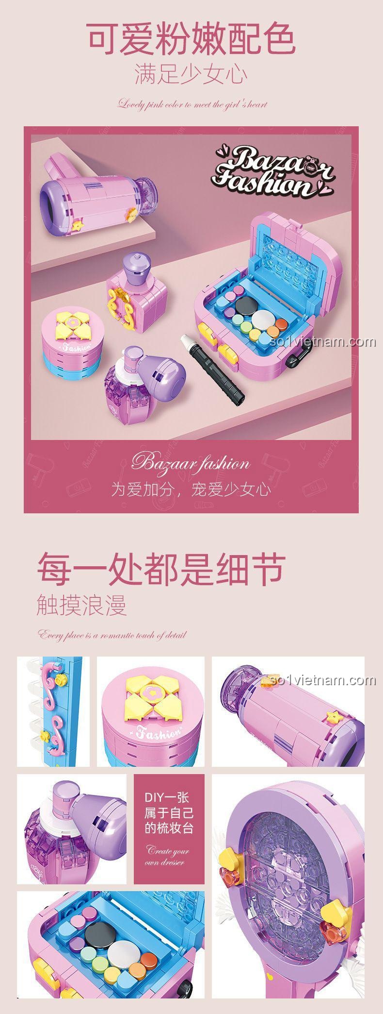 Bộ đồ chơi trang điểm Bazaar Fashion, mã số 58127, đến từ thương hiệu JIESTAR, một tên tuổi uy tín trong lĩnh vực đồ chơi lắp ghép. Lấy cảm hứng từ thế giới làm đẹp đầy màu sắc và sự quyến rũ, bộ sản phẩm này được thiết kế tỉ mỉ để mang đến cho các bé gái những trải nghiệm chân thực và thú vị nhất. Mỗi mảnh ghép đều ẩn chứa một câu chuyện, một ý tưởng sáng tạo, khuyến khích bé không ngừng khám phá và tưởng tượng. Đây không chỉ là đồ chơi, mà còn là công cụ giúp bé xây dựng ước mơ, nuôi dưỡng niềm đam mê và phát triển trí tưởng tượng phong phú.