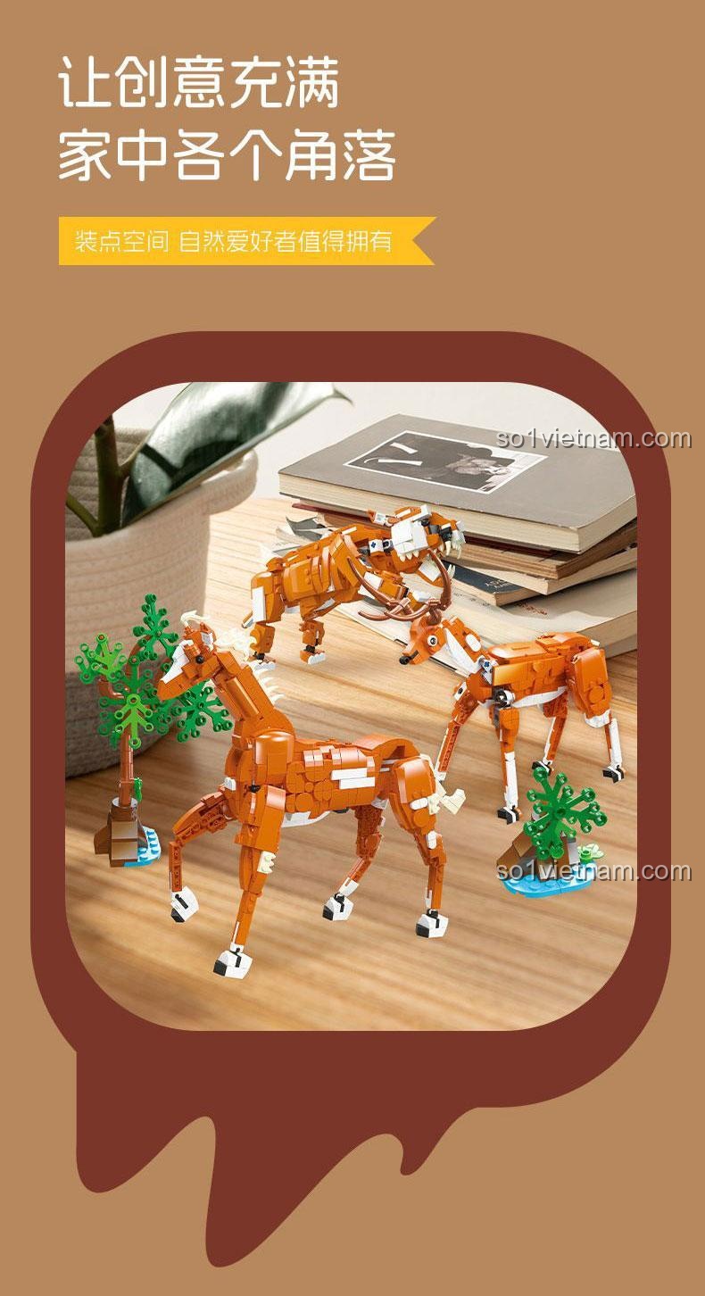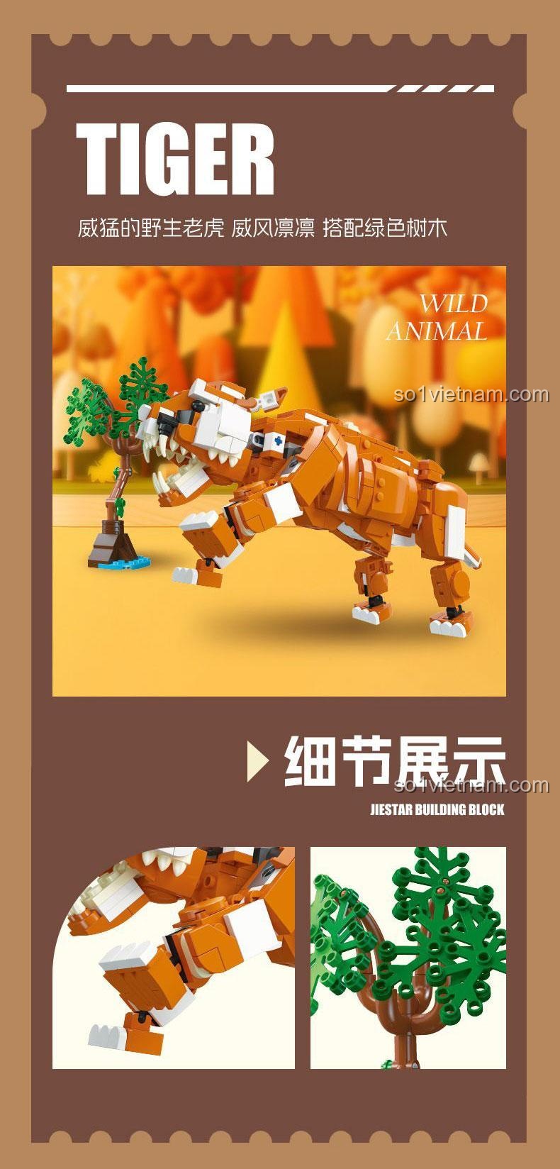 Bộ lắp ghép JIESTAR JJ9113 mang đến ba biểu tượng của thế giới tự nhiên: Hổ oai phong, Ngựa mạnh mẽ và Nai thanh thoát. Mỗi loài vật đều mang trong mình một câu chuyện riêng, một vai trò quan trọng trong hệ sinh thái.