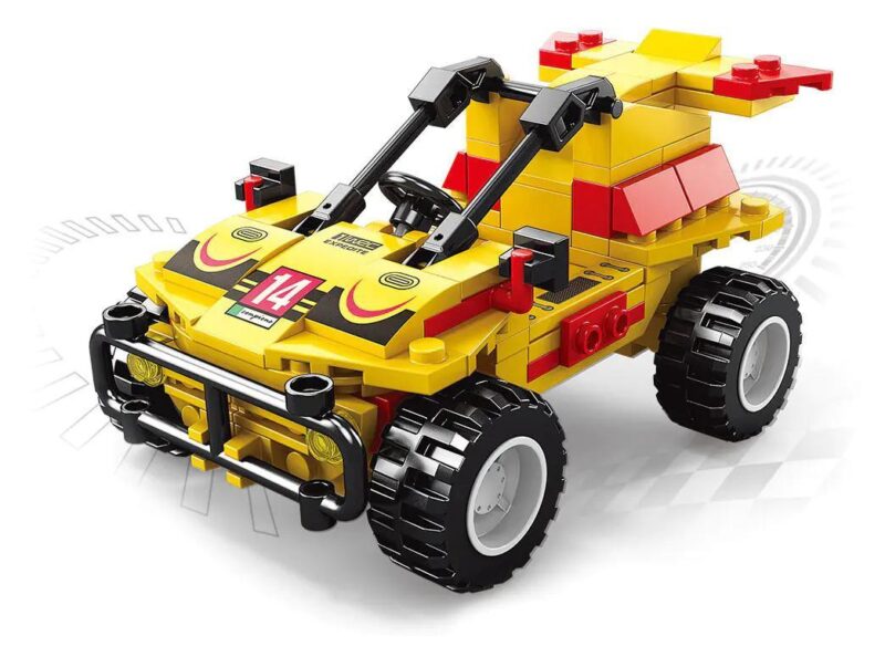 Ngay từ cái nhìn đầu tiên, Bộ xếp hình Xe Buggy Sa Mạc AchKo 10016 đã gây ấn tượng mạnh mẽ với thiết kế năng động và màu sắc nổi bật. Chiếc xe được khoác lên mình tông màu vàng chủ đạo, kết hợp hài hòa với các chi tiết màu đen và đỏ, tạo nên vẻ ngoài mạnh mẽ và đầy cá tính, đúng chất của một chiếc xe địa hình chuyên nghiệp.