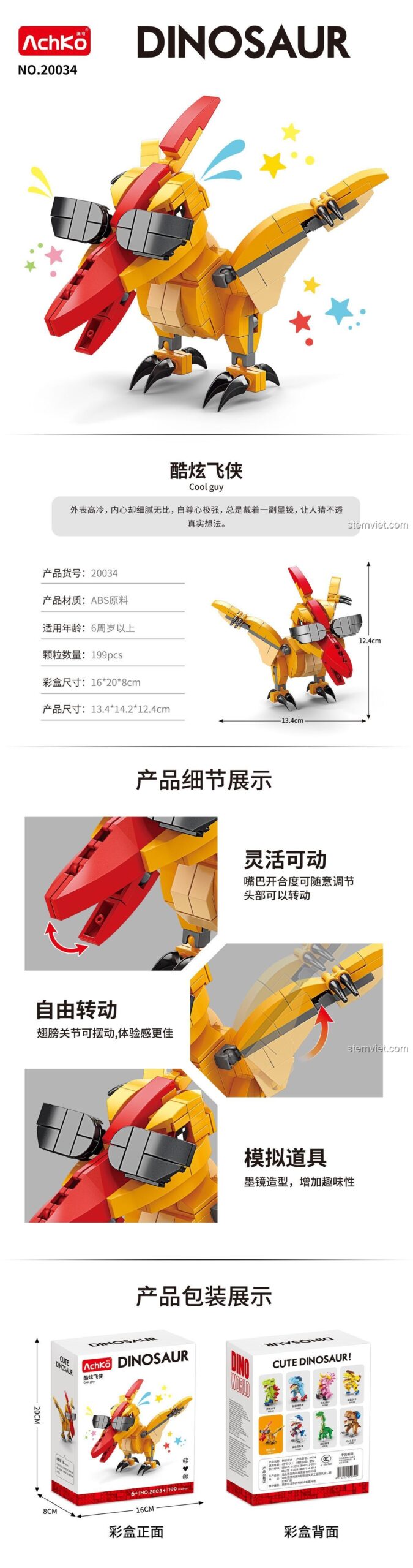 Đừng bỏ lỡ cơ hội sở hữu bộ lắp ghép AchKo 20034 Khủng long Siêu Ngầu với ưu đãi hấp dẫn tại Kho đồ chơi trẻ em! Đây là món quà tuyệt vời cho bé trai 6 tuổi dịp sinh nhật, Tết Thiếu Nhi 1/6 sắp tới, hoặc đơn giản là một phần thưởng xứng đáng sau những nỗ lực học tập của bé. Hãy sắm ngay để bé có những giờ phút vui chơi và học hỏi bổ ích!