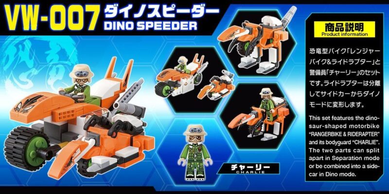 - Khủng long Riderapter: Một sinh vật khủng long đầy uy lực, có thể đứng độc lập hoặc kết hợp với mô tô.