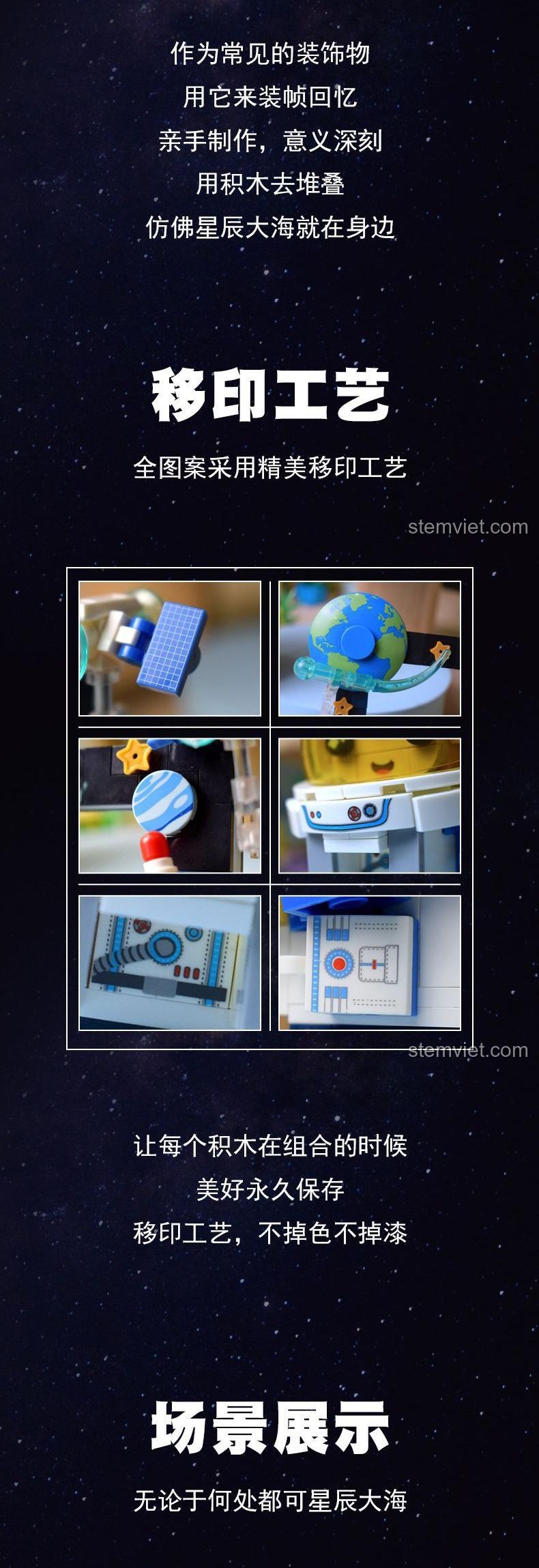 Có chứ! [bộ lắp ghép Khung ảnh không gian] giúp bé rèn luyện tư duy logic, khả năng giải quyết vấn đề, sự tập trung và khéo léo, đồng thời kích thích trí tưởng tượng và sáng tạo về vũ trụ bao la.