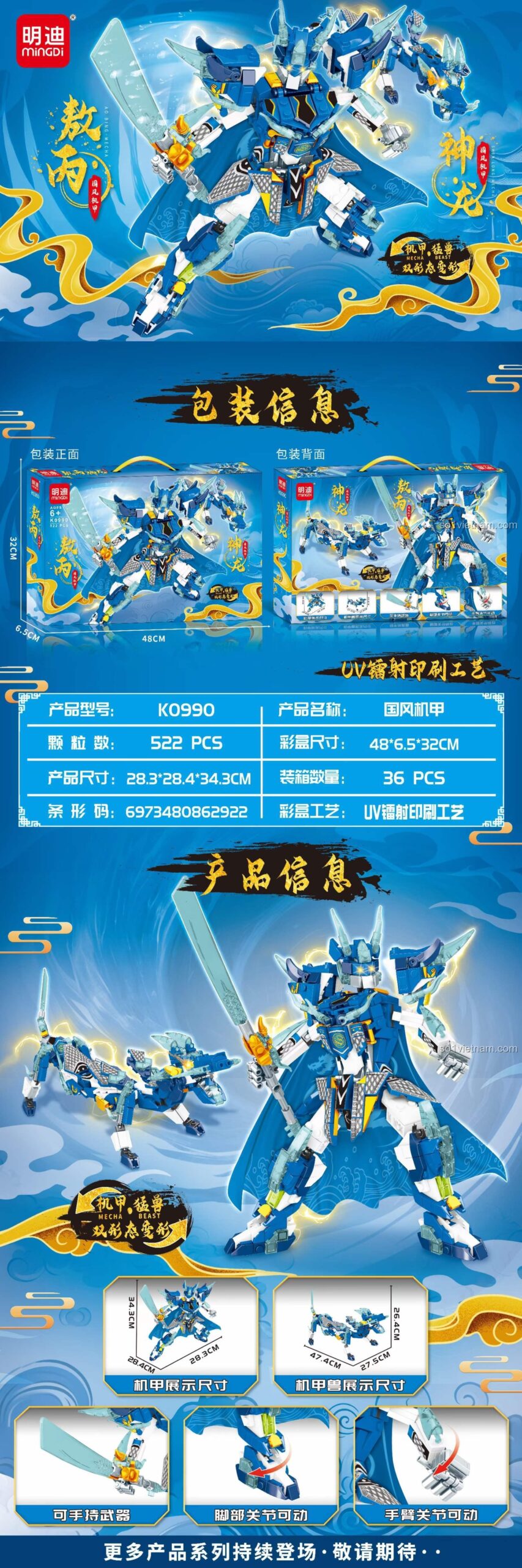 Bộ lắp ghép K0990 được thiết kế để lắp thành một mô hình chính là Cơ Giáp Áo Băng Thần Long.