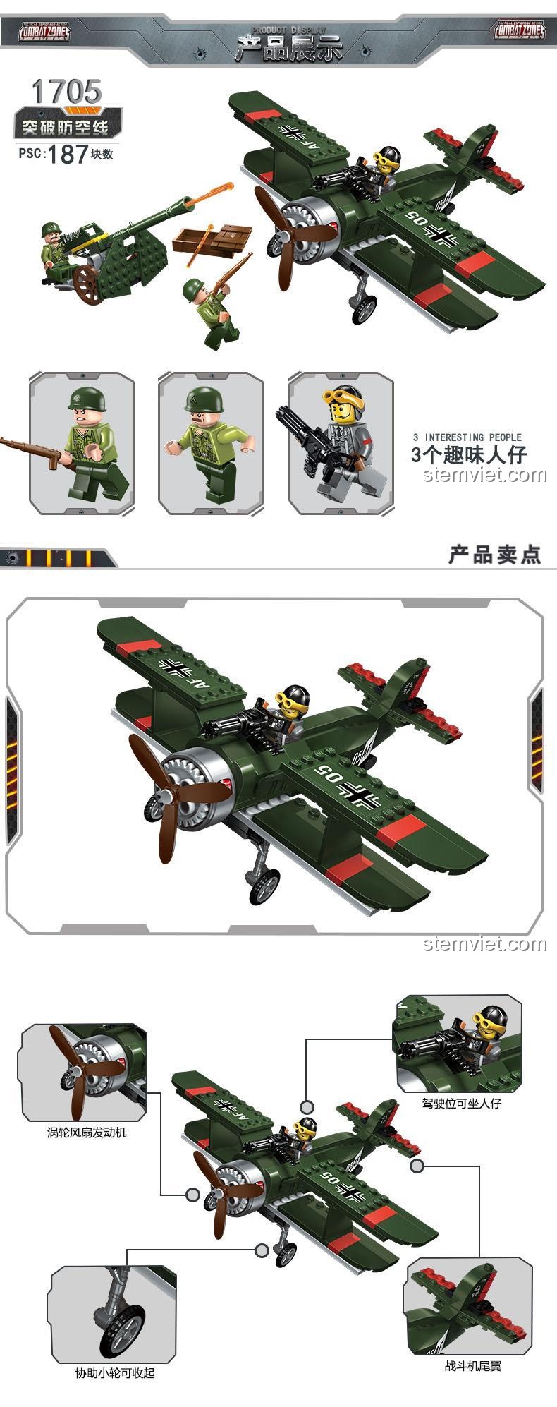 Hãy tưởng tượng bé yêu của bạn, một học sinh tiểu học đầy nhiệt huyết, tự tay tái hiện lại những khoảnh khắc lịch sử hào hùng. Từ việc lắp ráp chiếc máy bay chiến đấu hai cánh với cánh quạt quay, cho đến việc xây dựng khẩu pháo phòng không mạnh mẽ có thể bắn đạn nhựa, mỗi mảnh ghép đều kể một câu chuyện về lòng dũng cảm và chiến lược. Đây là cơ hội tuyệt vời để bé vừa chơi vừa học, hiểu thêm về một giai đoạn quan trọng của lịch sử thế giới, đồng thời phát triển tình yêu với những câu chuyện về người lính và chiến trường rực lửa.