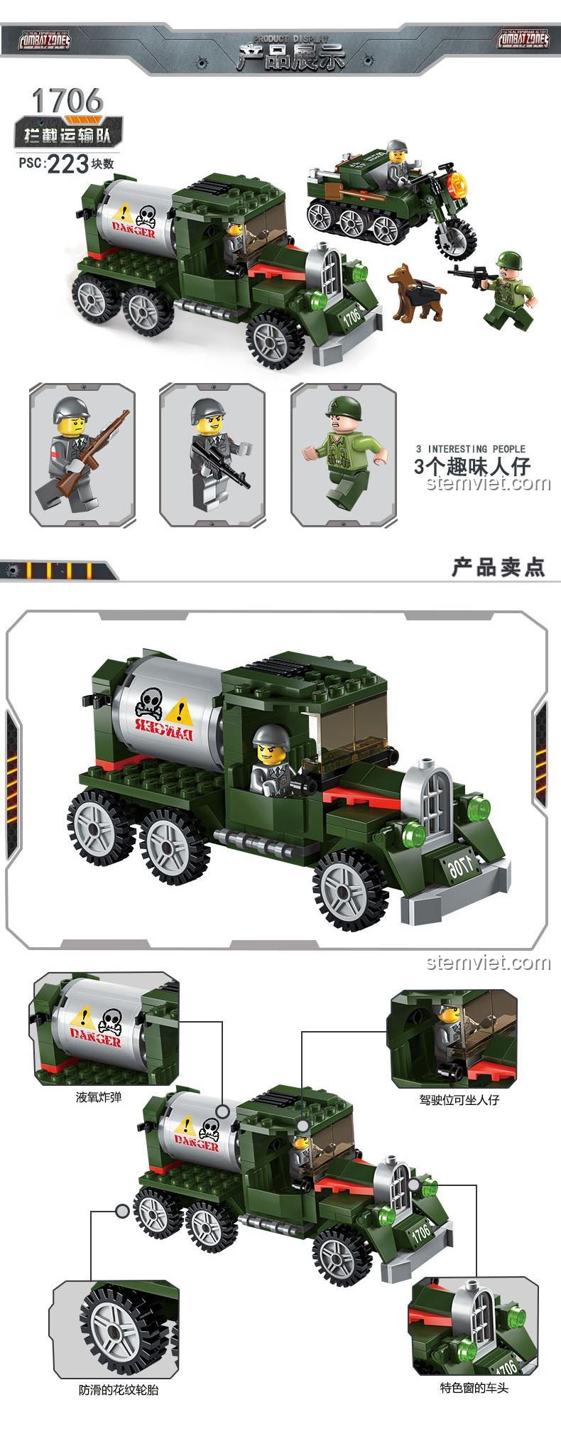 Hãy để bộ lắp ghép Xe tải quân sự Enlighten 1706 khơi dậy niềm đam mê và trí tưởng tượng của bé ngay hôm nay!