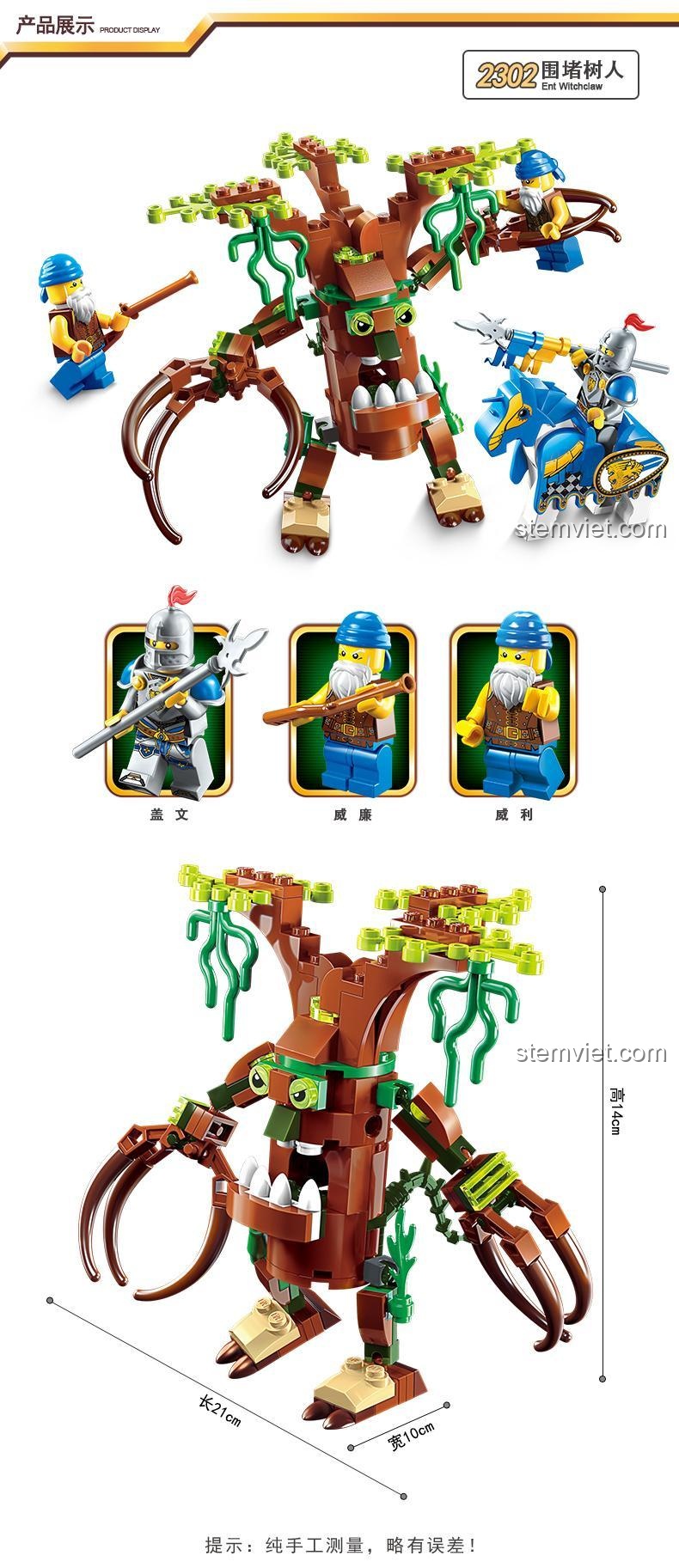 Đừng bỏ lỡ cơ hội sở hữu bộ lắp ráp Người cây Enlighten 2302 Cuộc Chiến Vinh Quang: Vây Hãm Người Cây với ưu đãi cực hấp dẫn tại Kho đồ chơi trẻ em! Đây là món quà tuyệt vời cho bé dịp Tết Nguyên Đán sắp tới, hay một phần thưởng xứng đáng sau những nỗ lực học tập. Với 3 minifigures Hiệp sĩ dũng cảm, bé sẽ có thêm nhiều nhân vật để sáng tạo câu chuyện. Đặc biệt, khi mua bộ đồ chơi đồ chơi lắp ráp Thế giới phép thuật 2302 này, bé sẽ được tặng thêm vũ khí hoặc dụng cụ cầm tay ngẫu nhiên cho các minifigure, giúp tăng cường sức mạnh cho đội quân của mình!