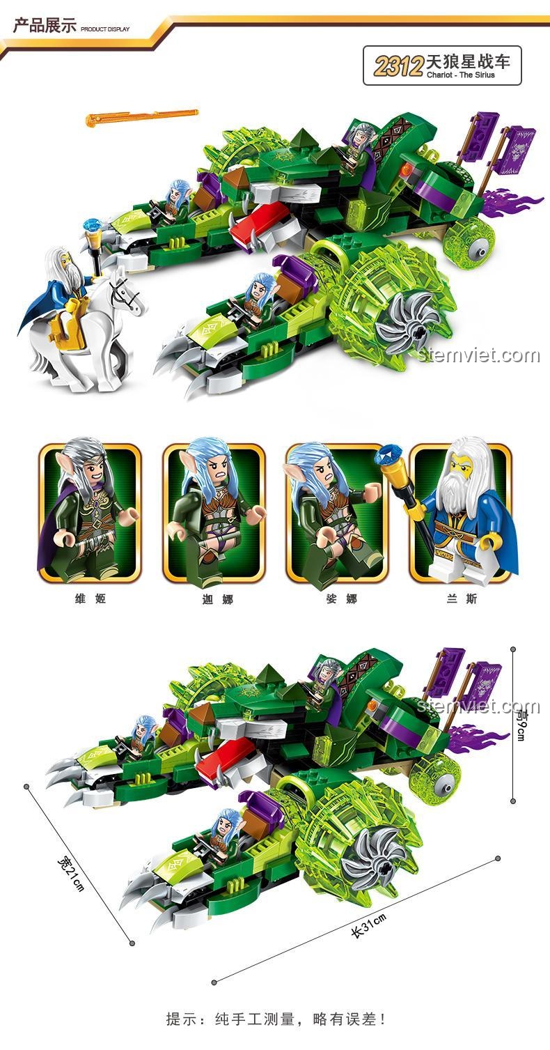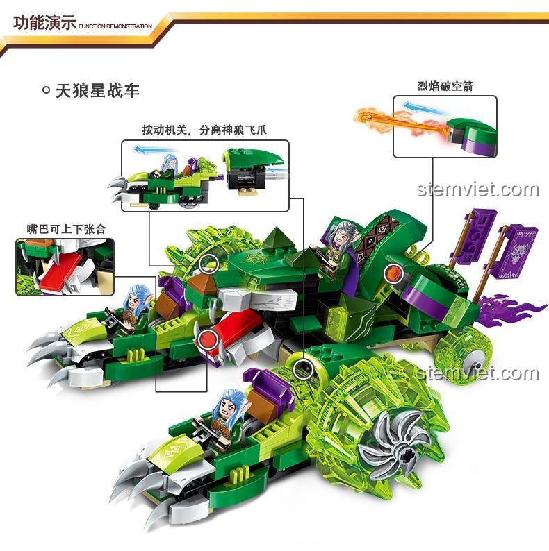 Chiến Xa Thiên Lang Tinh Enlighten 2312 không chỉ là một bộ lắp ghép thông thường, mà còn là một tác phẩm nghệ thuật thu nhỏ. Với màu sắc chủ đạo là xanh lá cây tươi sáng kết hợp cùng các chi tiết màu tím và xám, chiếc chiến xa này toát lên vẻ mạnh mẽ nhưng không kém phần huyền bí. Từng khối lắp ghép được thiết kế tỉ mỉ, tạo nên một mô hình có chiều dài 31cm, chiều rộng 21cm và chiều cao 17cm, vừa vặn để bé cầm nắm và điều khiển. Điểm nhấn của thiết kế là phần mũi xe sắc nhọn như móng vuốt, cùng với những bánh xe lớn có họa tiết độc đáo, gợi liên tưởng đến sức mạnh của loài sói. Bộ đồ chơi mô hình Enlighten 2312 còn đi kèm 4 minifigures chi tiết là Vicky, Janna, Sona và Lance, mỗi nhân vật đều có trang phục và vũ khí riêng, sẵn sàng tham gia vào mọi trận chiến. Sự kết hợp hoàn hảo giữa màu sắc, hình dáng và chi tiết tinh xảo biến Chiến Xa Thiên Lang Tinh thành một món đồ chơi không chỉ để chơi mà còn để trưng bày, thể hiện cá tính và niềm đam mê của bé.