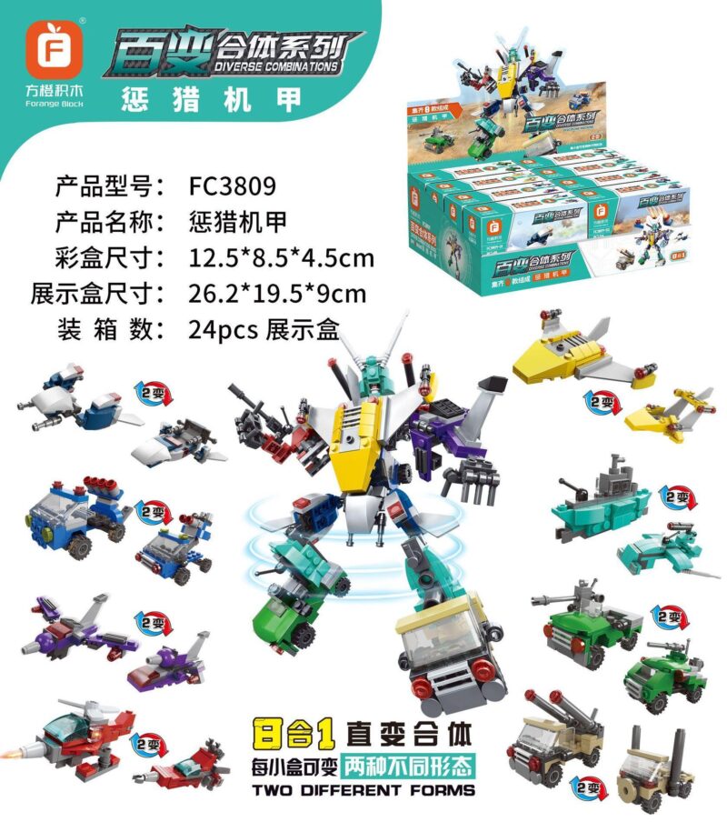 Bộ Forange FC3809 này cực kỳ đa dạng! Mỗi trong 8 hộp nhỏ có thể lắp thành 2 hình thái khác nhau, tổng cộng là 16 mô hình nhỏ. Đặc biệt, cả 8 mô hình nhỏ này có thể hợp thể thành một Robot Trừng Liệp Cơ Giáp khổng lồ duy nhất. Vậy tổng cộng bé có thể lắp được 17 mẫu khác nhau, mang lại trải nghiệm chơi phong phú và kéo dài.
