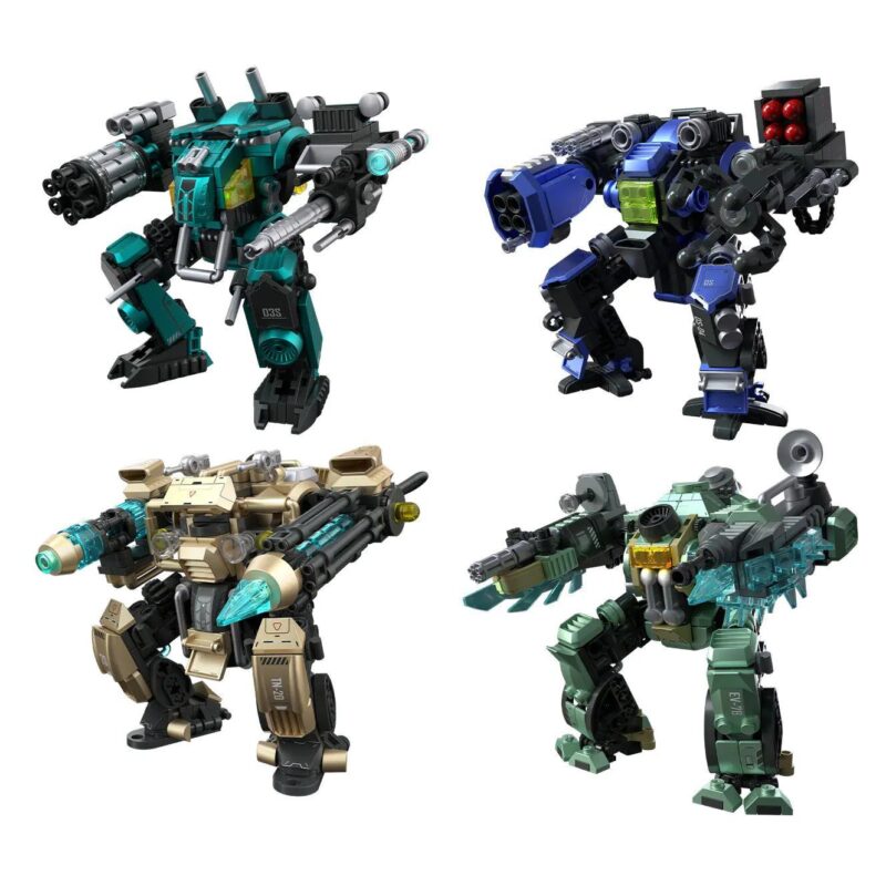 Bộ này là một hộp mù lớn chứa 4 hộp nhỏ, mỗi hộp nhỏ là một mẫu robot độc đáo. Tổng cộng có 4 mẫu robot khác nhau (GX-035, TN-20, DS-04, EV-7B) để bé sưu tập. Mỗi mẫu robot chỉ lắp được 1 kiểu duy nhất theo thiết kế của nó.