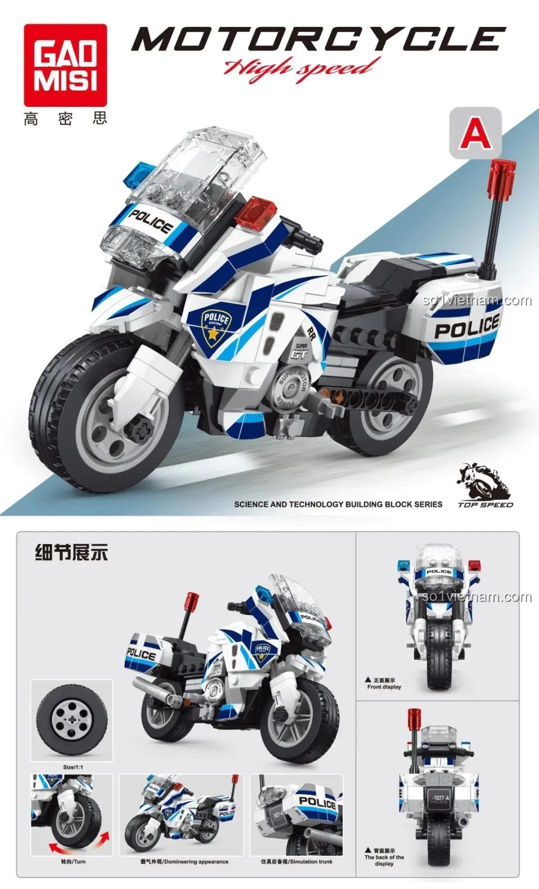 Bộ lắp ghép GAOMISI T1027-A Xe Mô Tô Cảnh Sát (246 mảnh ghép) – Tuần Tra Tốc Độ và 246 Chi Tiết