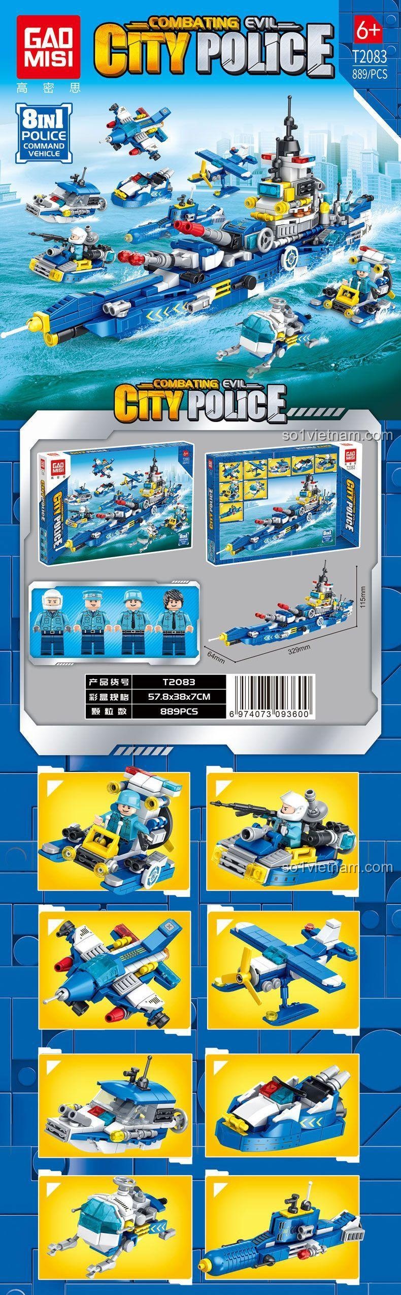 Bộ lắp ghép GAOMISI T2083 Tàu Tuần Tra Biển 8 trong 1 (889 mảnh ghép) – Biến Hình Linh Hoạt và Lắp Được 8 Kiểu
