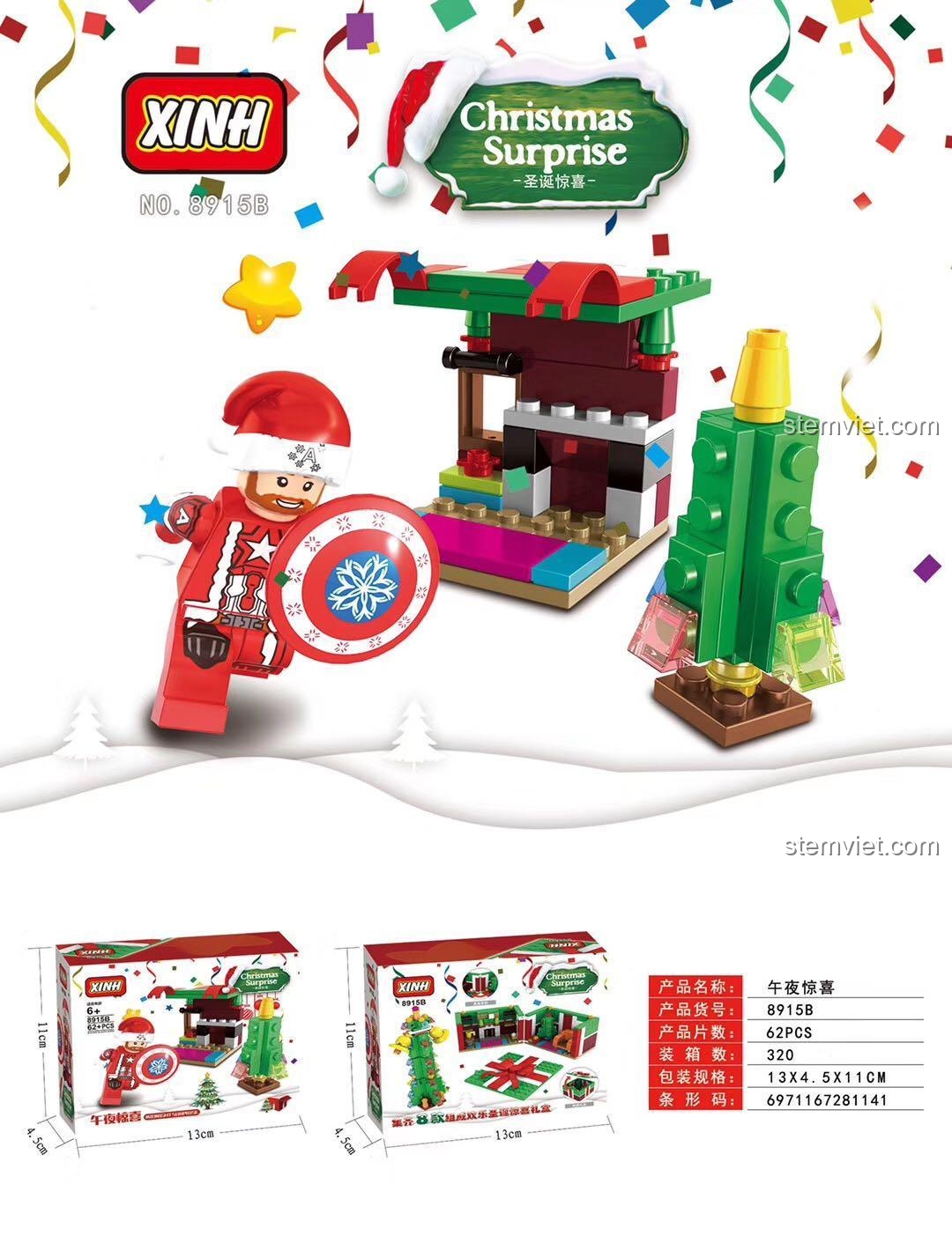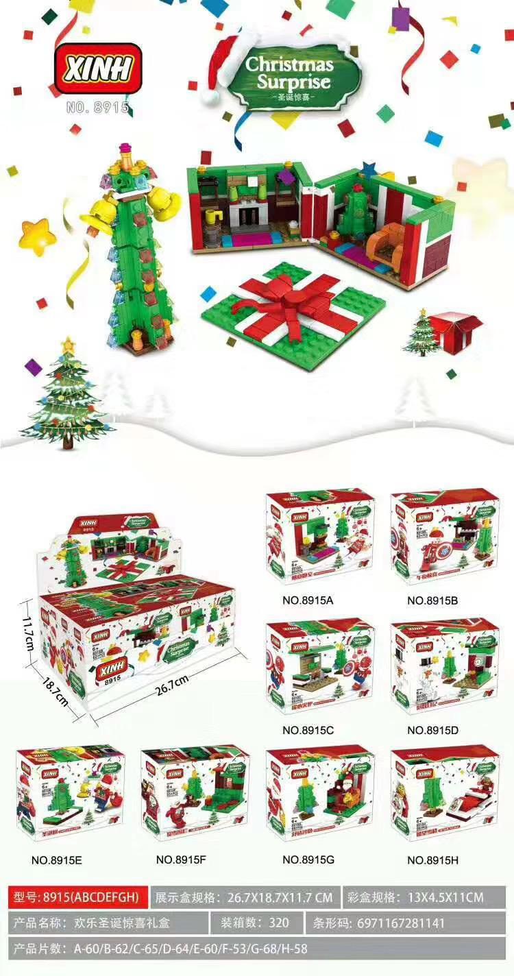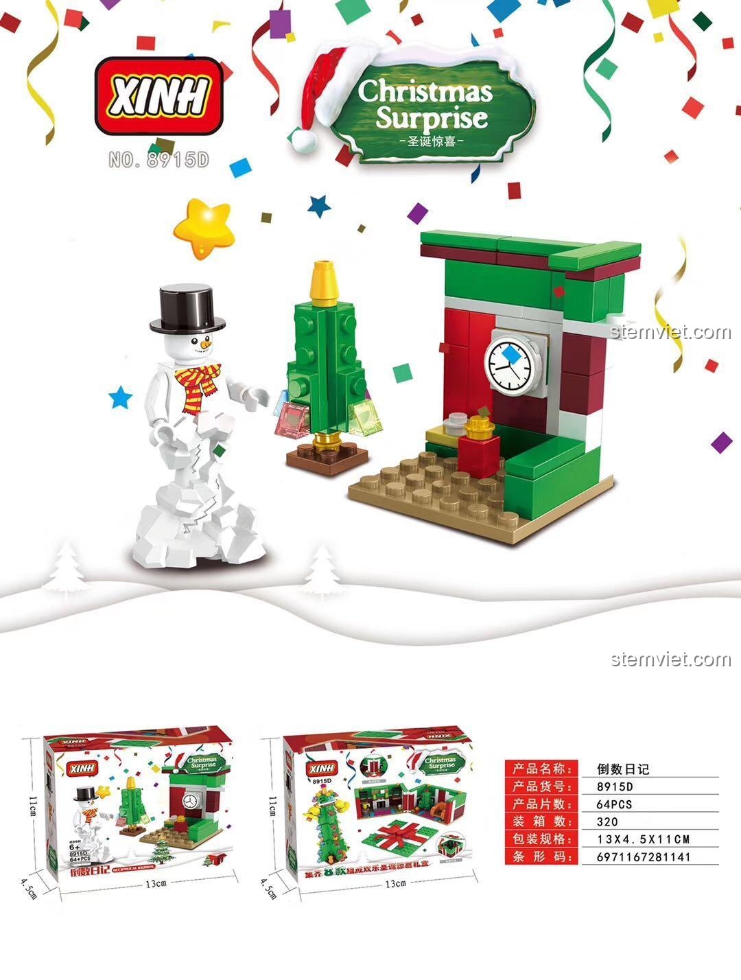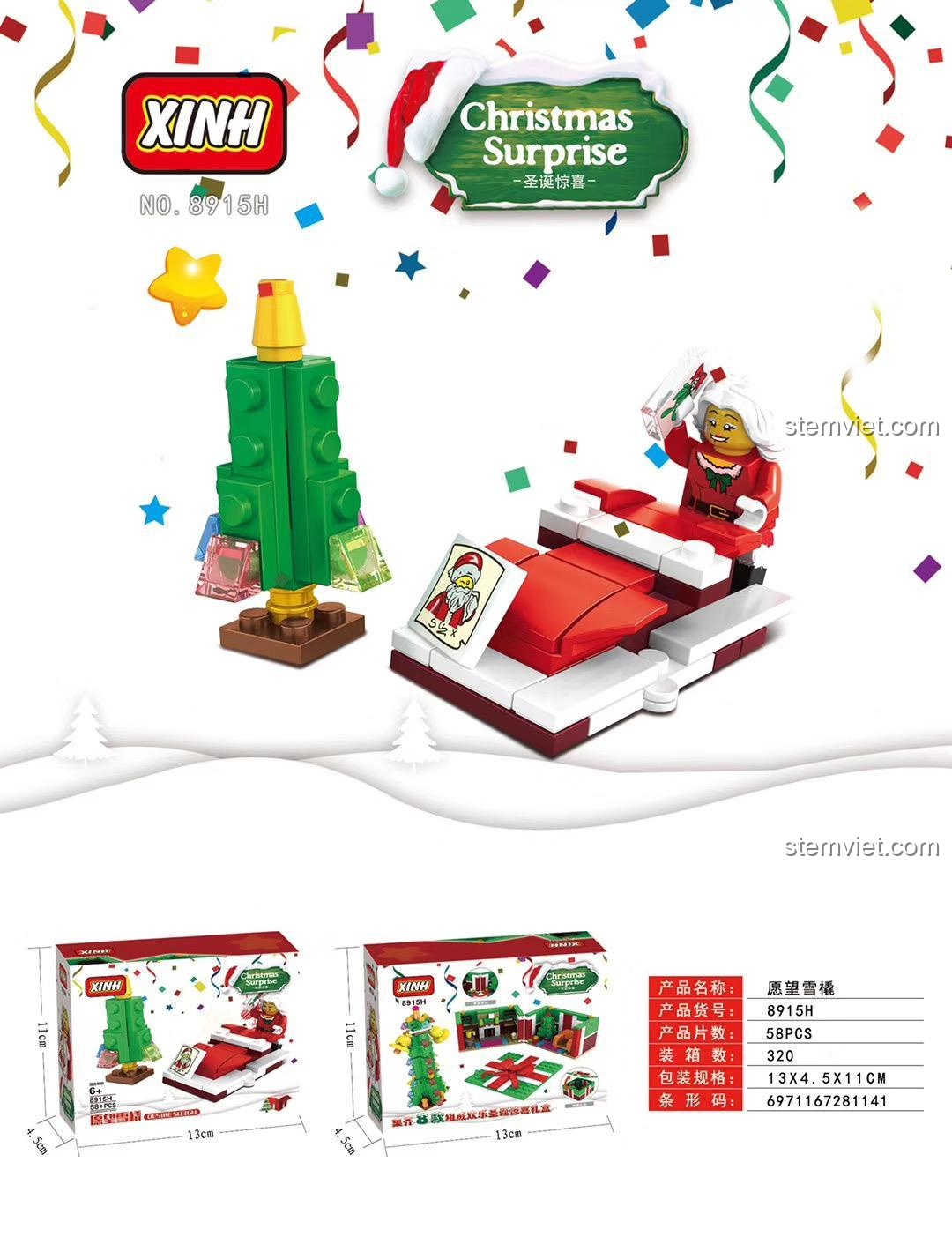 Bộ lắp ghép XINH 8915 có tổng cộng 320 mảnh ghép, cho phép bé thỏa sức sáng tạo và lắp ráp 8 mô hình Giáng Sinh khác nhau.