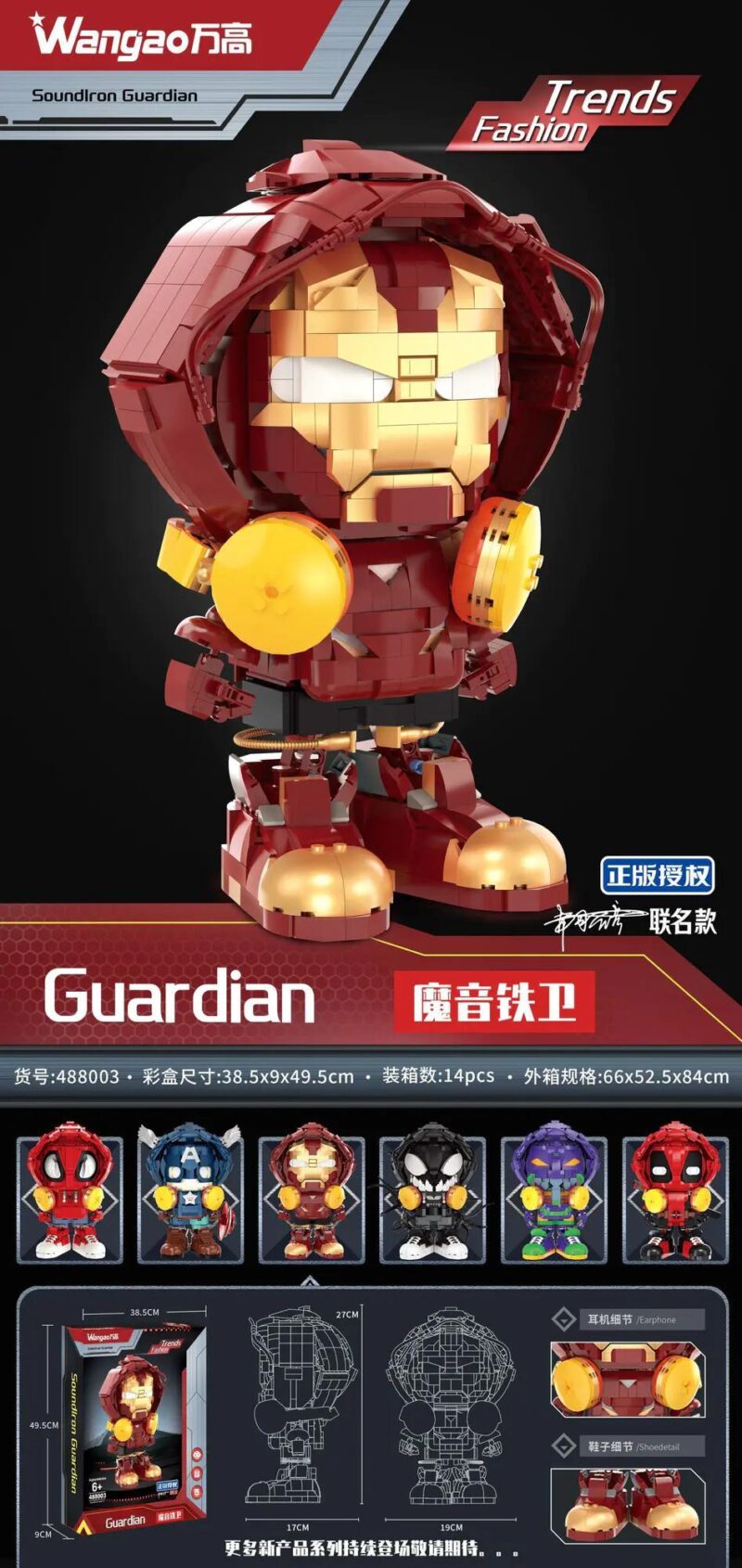 Bộ lắp ghép Guardian Wangao 488003 cho phép bé lắp ráp thành mô hình Guardian phiên bản chibi, và có khả năng biến hình để tạo ra nhiều nhân vật siêu anh hùng khác như Iron Man, Captain America, Venom, Iron Man Mark 85, tùy thuộc vào sự sáng tạo của bé.