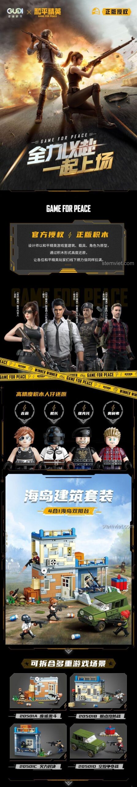 Hãy nhanh tay đặt mua bộ đồ chơi GUDI 20501 ngay hôm nay để bé trai của bạn có những giờ phút vui chơi, học hỏi và sáng tạo không ngừng nghỉ trong thế giới Game for Peace đầy kịch tính!