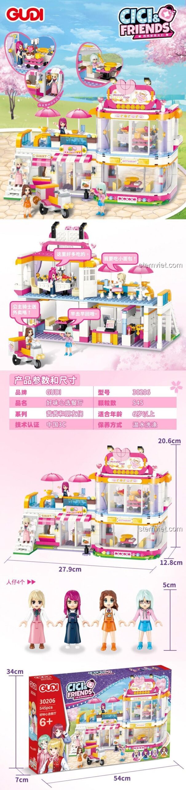 ✨ Khám Phá Thế Giới Ẩm Thực Đầy Màu Sắc Cùng Bộ Lắp Ghép Nhà Hàng CICI & Friends GUDI 30206!