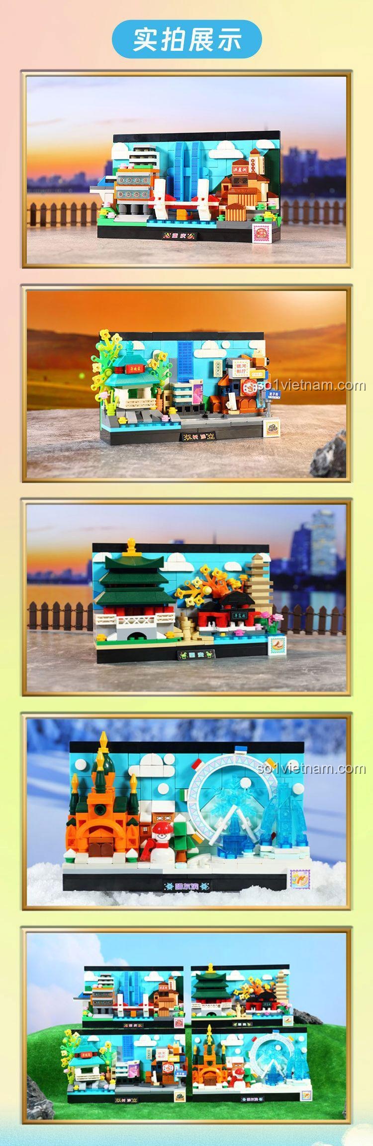 Bộ sản phẩm này bao gồm 4 mô hình bưu thiếp thành phố riêng biệt: Trùng Khánh, Trường Sa, Tây An, và Cáp Nhĩ Tân. Bé có thể lắp ráp từng mẫu một hoặc cùng lúc để tạo thành một bộ sưu tập hoàn chỉnh, mang đến trải nghiệm chơi đa dạng và thú vị.