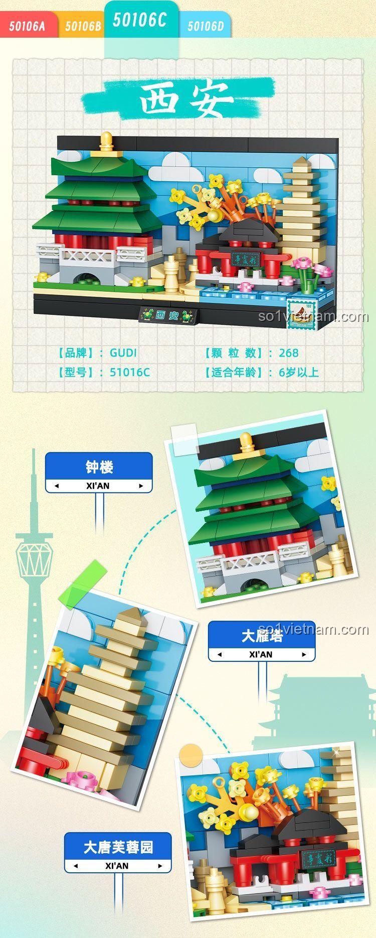 Mẹ có biết không, mỗi thành phố đều ẩn chứa những câu chuyện và nét kiến trúc độc đáo riêng? Bộ lắp ghép Bưu Thiếp Thành Phố GUDI 51016 không chỉ là một bộ đồ chơi mô hình GUDI thông thường, mà còn là cánh cửa mở ra hành trình khám phá 4 đô thị nổi tiếng của Trung Quốc ngay tại nhà! Trùng Khánh với những cây cầu và kiến trúc độc đáo, Trường Sa với vẻ đẹp cổ kính pha lẫn hiện đại, Tây An – kinh đô cổ kính ngàn năm lịch sử, và Cáp Nhĩ Tân với kiến trúc Nga tráng lệ cùng lễ hội băng tuyết huyền ảo. Các thành phố này đều là những trung tâm văn hóa, kinh tế quan trọng, thu hút hàng triệu du khách mỗi năm bởi những địa danh mang tính biểu tượng. Giờ đây, bé trai hay bé gái 6 tuổi của mẹ có thể tự tay tái hiện những kỳ quan này, biến những chuyến du lịch trong mơ thành hiện thực ngay trên bàn học. Đây là cách tuyệt vời để bé vừa chơi vừa học về địa lý, văn hóa, và lịch sử một cách trực quan, sinh động nhất.
