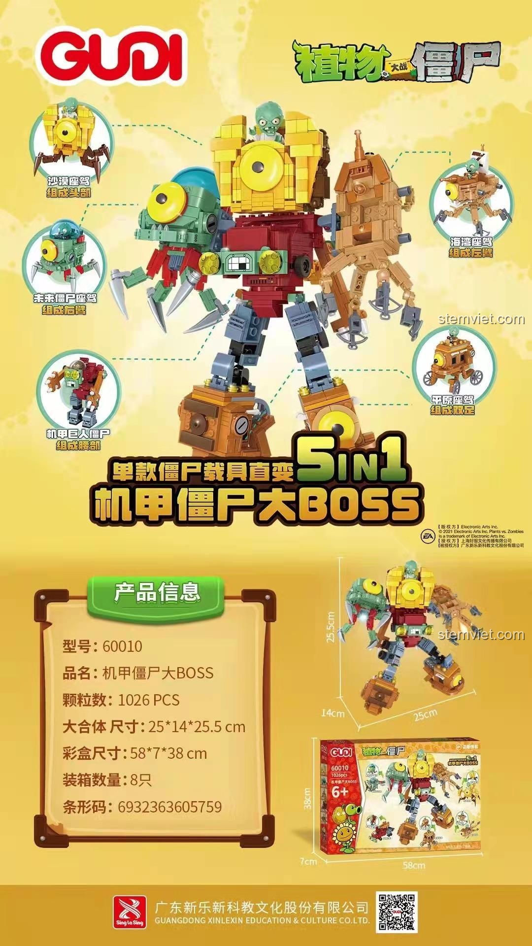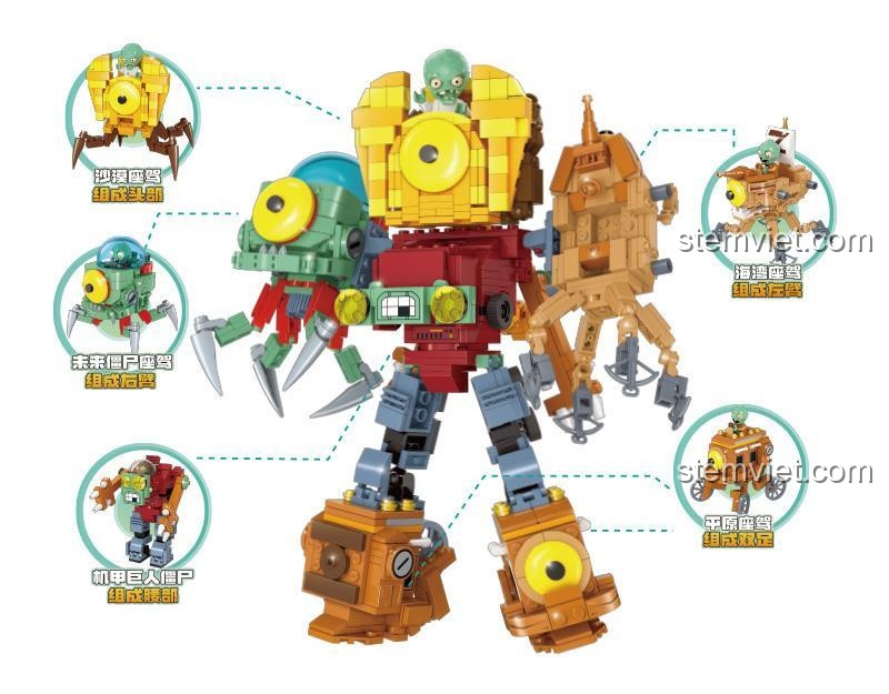 Bạn đã sẵn sàng bước vào thế giới đầy kịch tính của Plants vs. Zombies, nơi cuộc chiến giữa cây cối và zombie không bao giờ kết thúc? Giờ đây, cuộc phiêu lưu ấy sẽ trở nên sống động hơn bao giờ hết ngay trong căn phòng của bé với bộ lắp ghép GUDI 60010 Robot Zombie King Hợp Thể Plants vs. Zombies! Lấy cảm hứng từ tựa game chiến thuật đình đám toàn cầu, bộ đồ chơi lắp ráp GUDI này không chỉ tái hiện chân thực các nhân vật mà còn mang đến một trải nghiệm hoàn toàn mới: tự tay xây dựng cỗ máy hủy diệt của Zombie King.