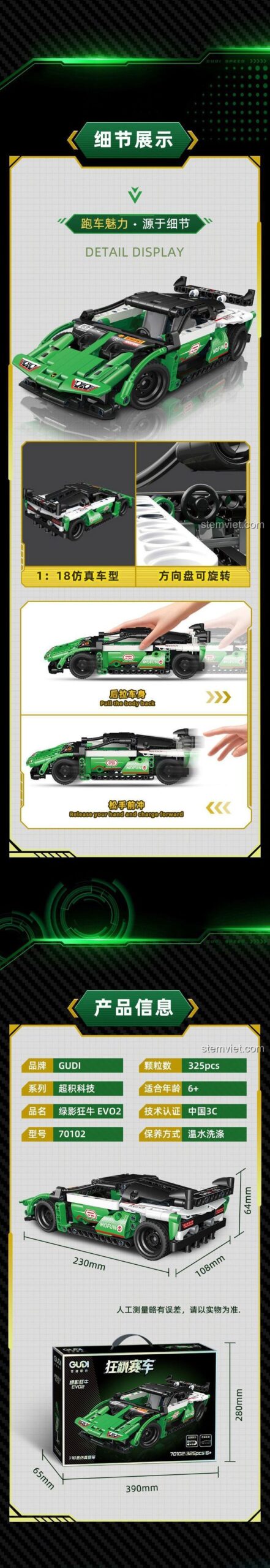 🏎️ Khám Phá Nguồn Gốc Tốc Độ: GUDI 70102 Siêu xe đua Bò Xanh EVO2