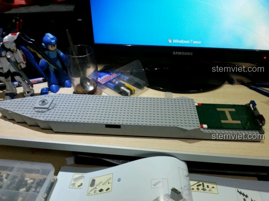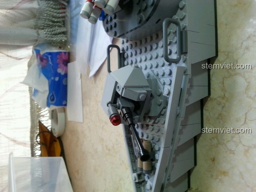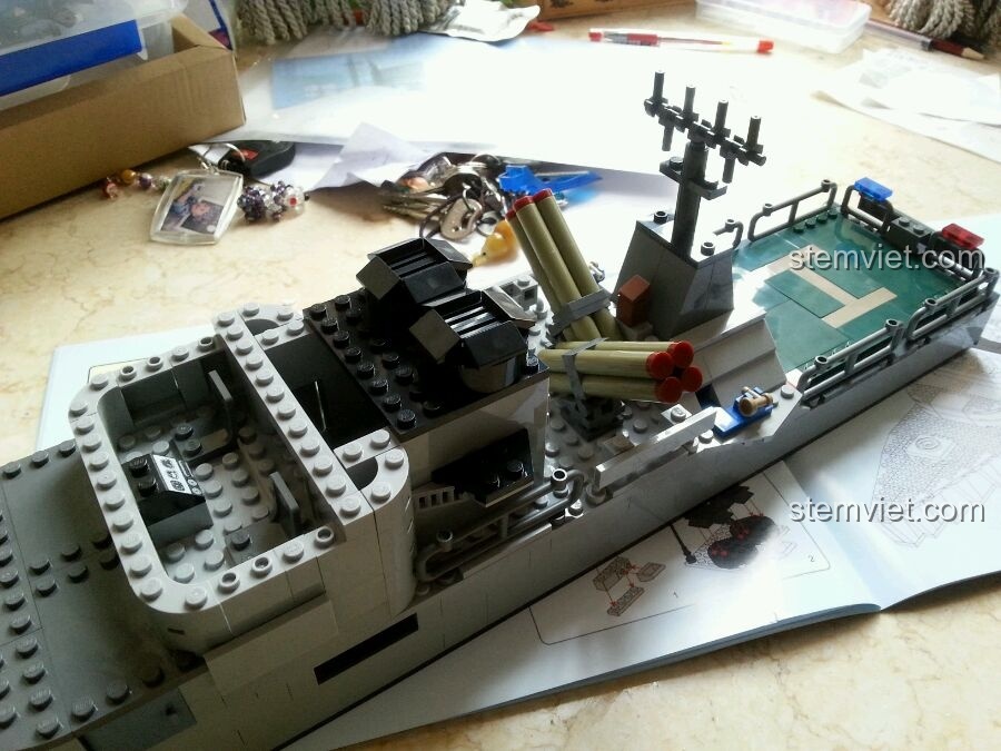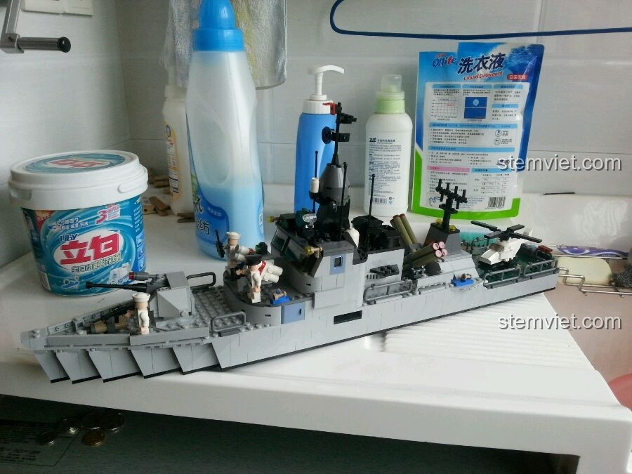 Mô hình đồ chơi lắp ráp GUDI 8026 Tàu Chiến Hạm này sẽ khiến bé và cả mẹ phải trầm trồ bởi độ chi tiết tinh xảo và chân thực. Với chiều dài ấn tượng lên đến 60cm, đây là một mô hình lớn, tái hiện gần như hoàn hảo một chiếc tàu hộ vệ tên lửa ngoài đời thực. Màu sắc chủ đạo của tàu là xám, mang đậm phong cách quân sự mạnh mẽ, kết hợp với sàn đáp trực thăng màu xanh lá nổi bật ở phía đuôi tàu, tạo nên một tổng thể hài hòa và bắt mắt.