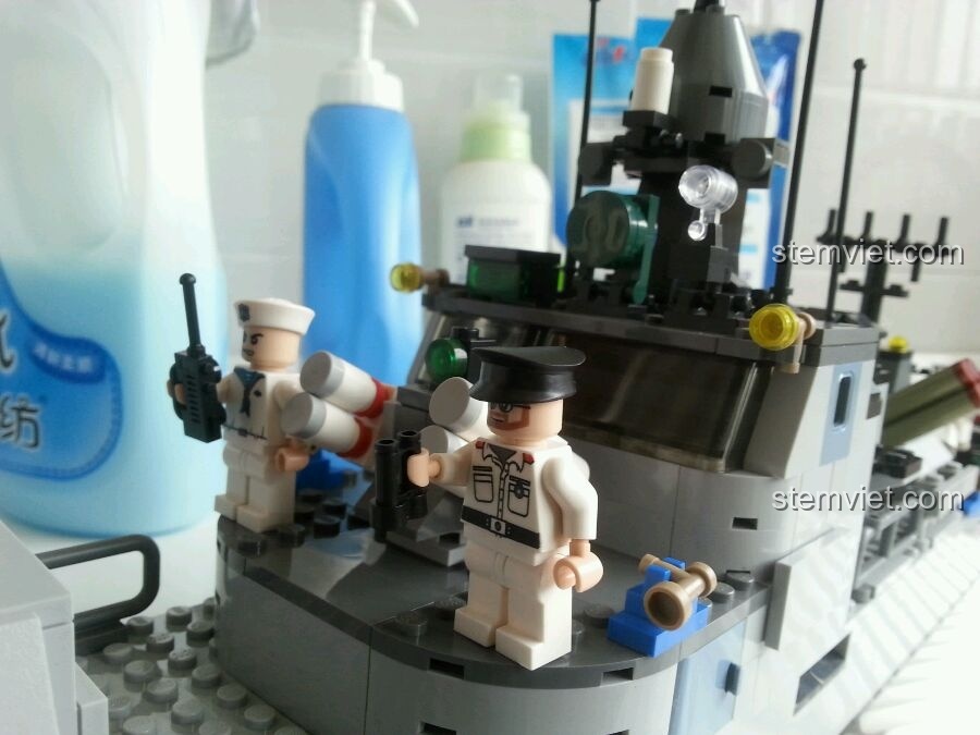 Đặc biệt, bộ đồ chơi lắp ráp GUDI 8026 Tàu Hộ Vệ Tên Lửa còn đi kèm 4 minifigures lính hải quân dũng cảm, mỗi người được trang bị vũ khí và phụ kiện riêng như súng trường, súng lục, và ống nhòm. Bé có thể đặt các minifigures này vào các vị trí khác nhau trên tàu, từ cầu tàu chỉ huy đến các vị trí pháo thủ, tạo nên những câu chuyện và kịch bản phong phú. Chiếc trực thăng nhỏ đi kèm cũng là một điểm cộng lớn, giúp bé mở rộng không gian chơi, thực hiện các nhiệm vụ trinh sát hoặc cứu hộ trên không. Tất cả những tính năng này biến GUDI 8026 Tàu Hộ Vệ Tên Lửa Hùng Mạnh thành một sân chơi đầy sống động, nơi bé có thể thỏa sức khám phá và phát triển trí tưởng tượng.