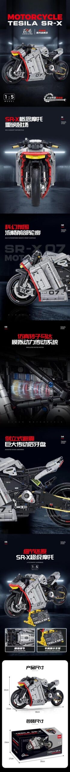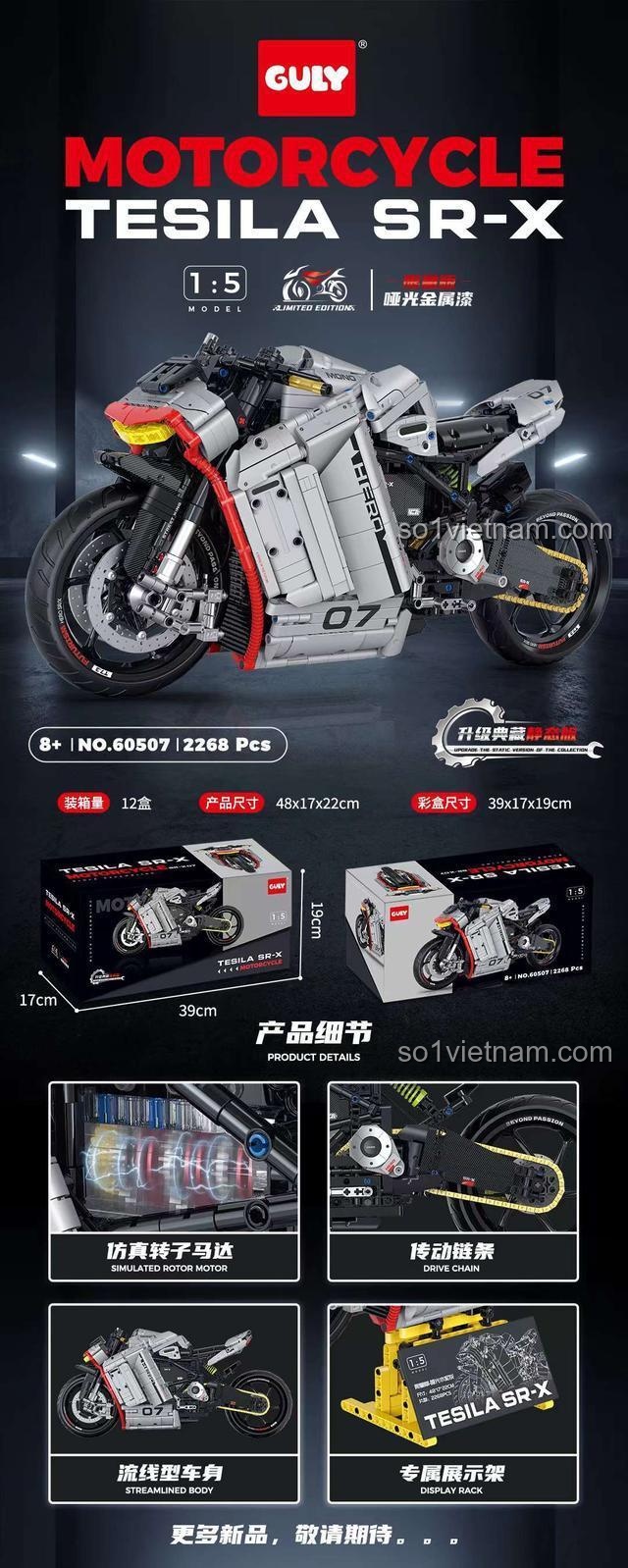 Bộ lắp ghép GULY 60507 Mô tô Tesla SR-X (2268 chi tiết) – Tốc Độ Tương Lai và Tỉ lệ 1:5, Có Đèn LED