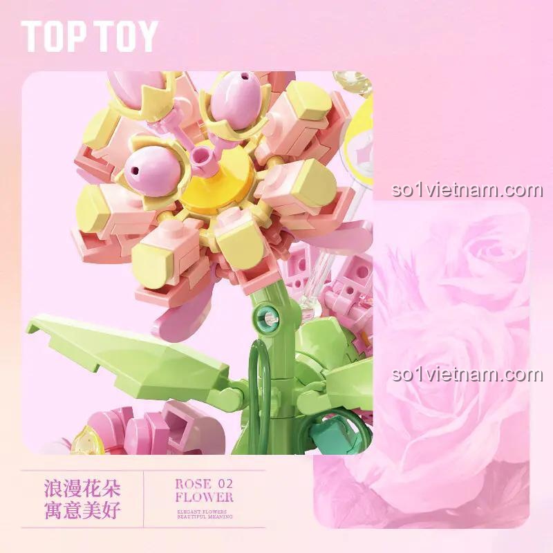Với mã sản phẩm TC2705, TOP TOY đã mang đến một tuyệt tác mô hình hoa được tạo nên từ những viên gạch lắp ghép nhỏ xinh. Mỗi cánh hoa, mỗi chiếc lá đều được chăm chút tỉ mỉ, tái hiện chân thực vẻ đẹp kiêu sa và rực rỡ của các loài hoa. Khi hoàn thành, bạn sẽ sở hữu một chậu hoa đầy sức sống, với gam màu chủ đạo là hồng, vàng, trắng và xanh lá, tạo nên một bức tranh thiên nhiên sống động ngay trong không gian của mình.