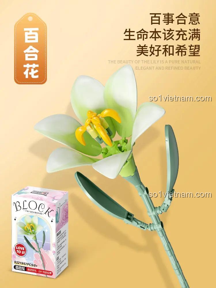 Sản phẩm mô phỏng chân thực vẻ đẹp của hoa Lily với các mảnh ghép mini block, mang tính trang trí cao.