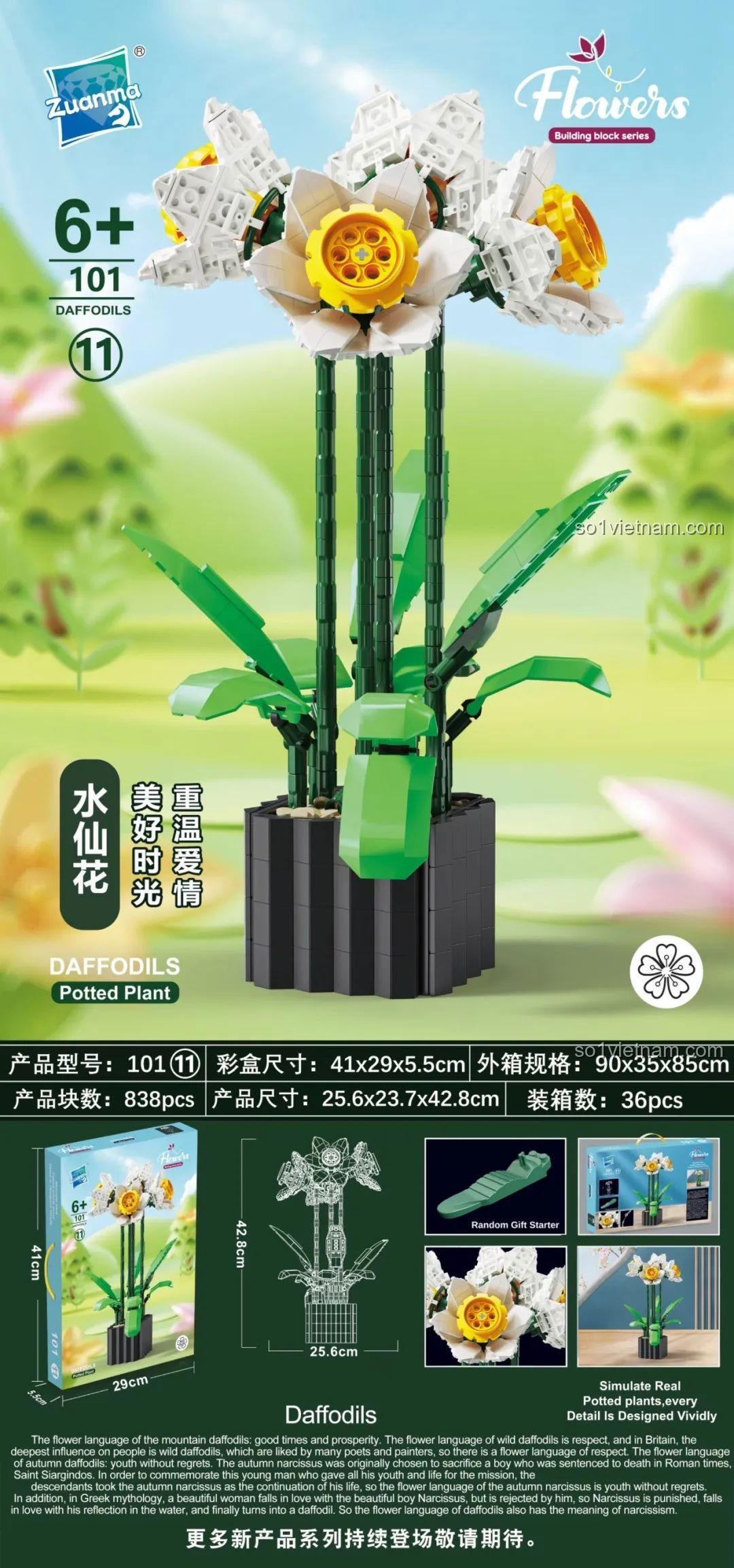 Bộ lắp ghép Hoa Thủy Tiên Zuanma 101-11 có tổng cộng 838 mảnh ghép.