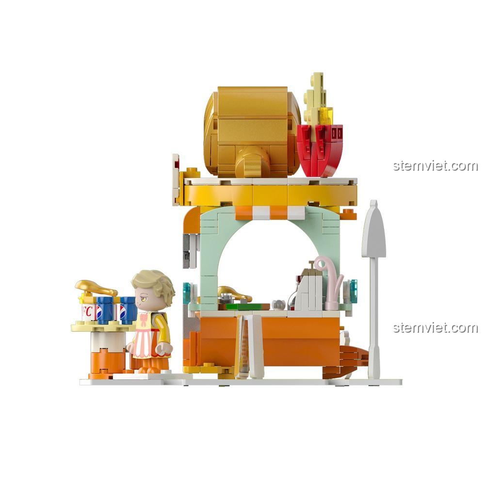 • Kịch bản 2: Dãy Phố Ẩm Thực Sầm Uất: Kết nối cửa hàng gà rán với các mô hình cửa hàng khác (nếu có) để tạo thành một dãy phố, bé có thể di chuyển minifigure giữa các cửa hàng, tạo ra những câu chuyện giao thương thú vị.