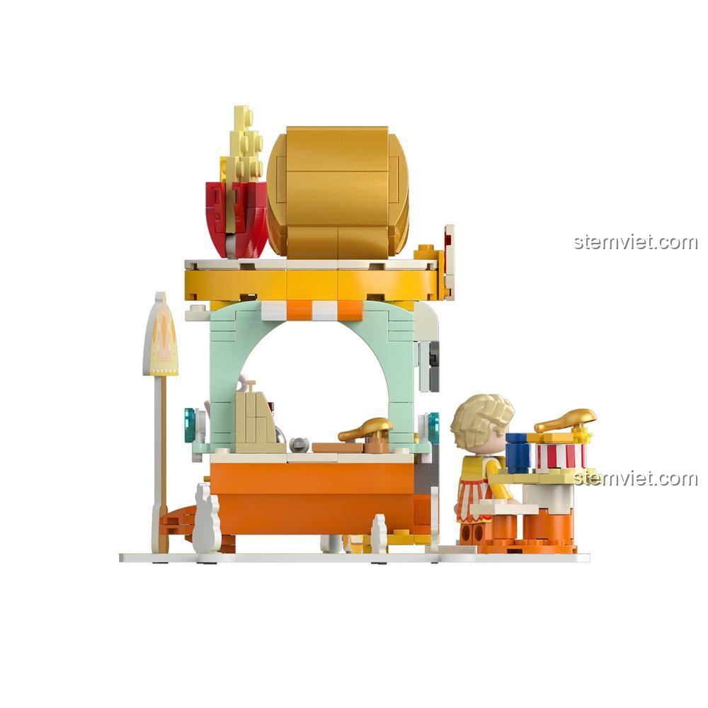 • Kịch bản 5: Câu Chuyện Của Những Người Bạn: Bé tạo ra các tình huống giao tiếp giữa cô chủ quán và khách hàng, hoặc giữa các nhân vật minifigure từ các bộ đồ chơi khác, phát triển kỹ năng xã hội và đồng cảm.