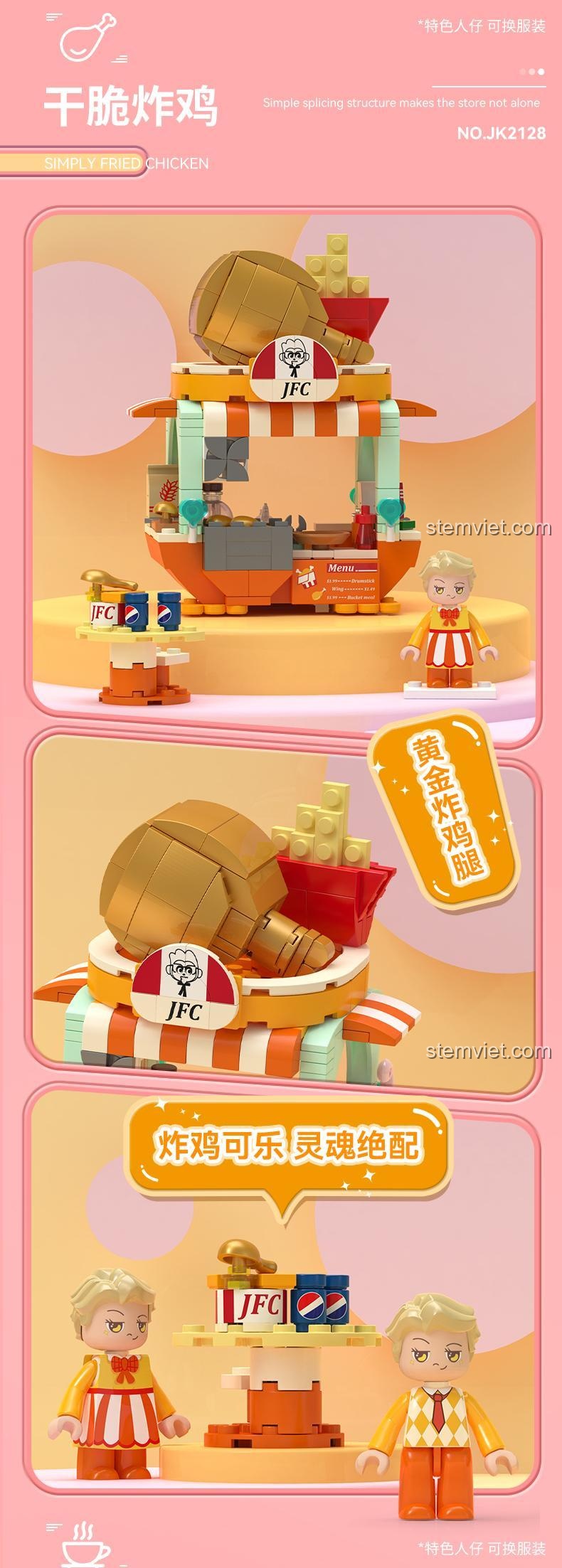 Bộ Lắp Ghép JAKI JK2128 Cửa hàng Gà Rán Giòn Tan (321 Mảnh Ghép) – Thế Giới Ẩm Thực Mini và Kết Nối Dãy Phố