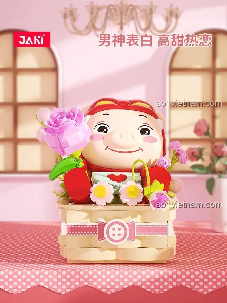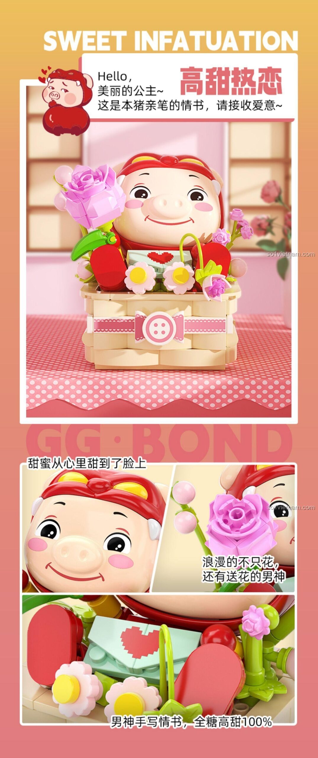 Bộ lắp ghép JAKI JK6850 tái hiện nhân vật hoạt hình GGBond quen thuộc trong một khung cảnh đầy thơ mộng và lãng mạn. Với tông màu hồng chủ đạo, điểm xuyết sắc đỏ, vàng và trắng, mô hình sau khi hoàn thành sẽ trở thành một vật trang trí xinh xắn, thể hiện tình yêu ngọt ngào.