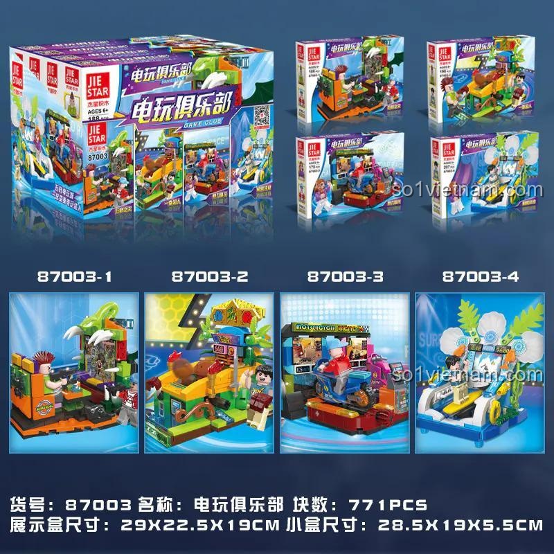 Bạn đang tìm kiếm một món quà độc đáo, vừa mang tính giải trí cao, vừa giúp bé phát triển tư duy? Hãy cùng bé bước vào thế giới sôi động của bộ lắp ghép Câu lạc bộ trò chơi điện tử JIE STAR 87003! Lấy cảm hứng từ những khu vui chơi game arcade đầy màu sắc, bộ đồ chơi này không chỉ là một thử thách lắp ráp thú vị mà còn là cánh cửa mở ra những giờ phút vui chơi sáng tạo không giới hạn. Với 4 mô hình máy game riêng biệt, bé có thể tự mình xây dựng một trung tâm giải trí mini ngay tại nhà, tái hiện lại không khí náo nhiệt và vui vẻ của những phòng game arcade huyền thoại. Đây chắc chắn sẽ là món quà tuyệt vời cho bé trai và bé gái 6 tuổi trở lên, khơi gợi niềm đam mê khám phá và sáng tạo.