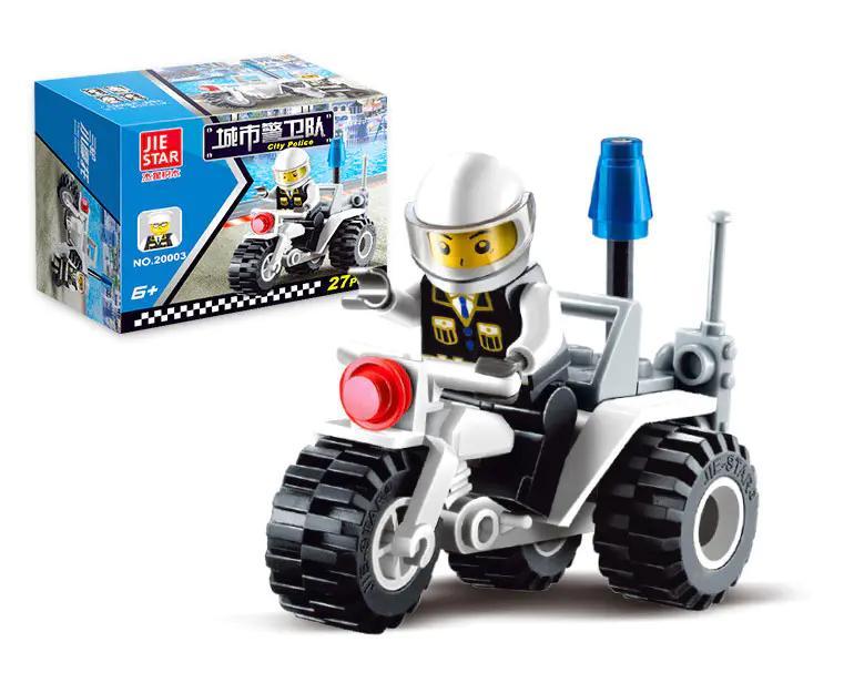Bộ lắp ghép JIESTAR 20003 Xe Mô Tô Ba Bánh Cảnh Sát (27 mảnh ghép) – Tuần Tra Thành Phố và Có Minifigure Cảnh Sát